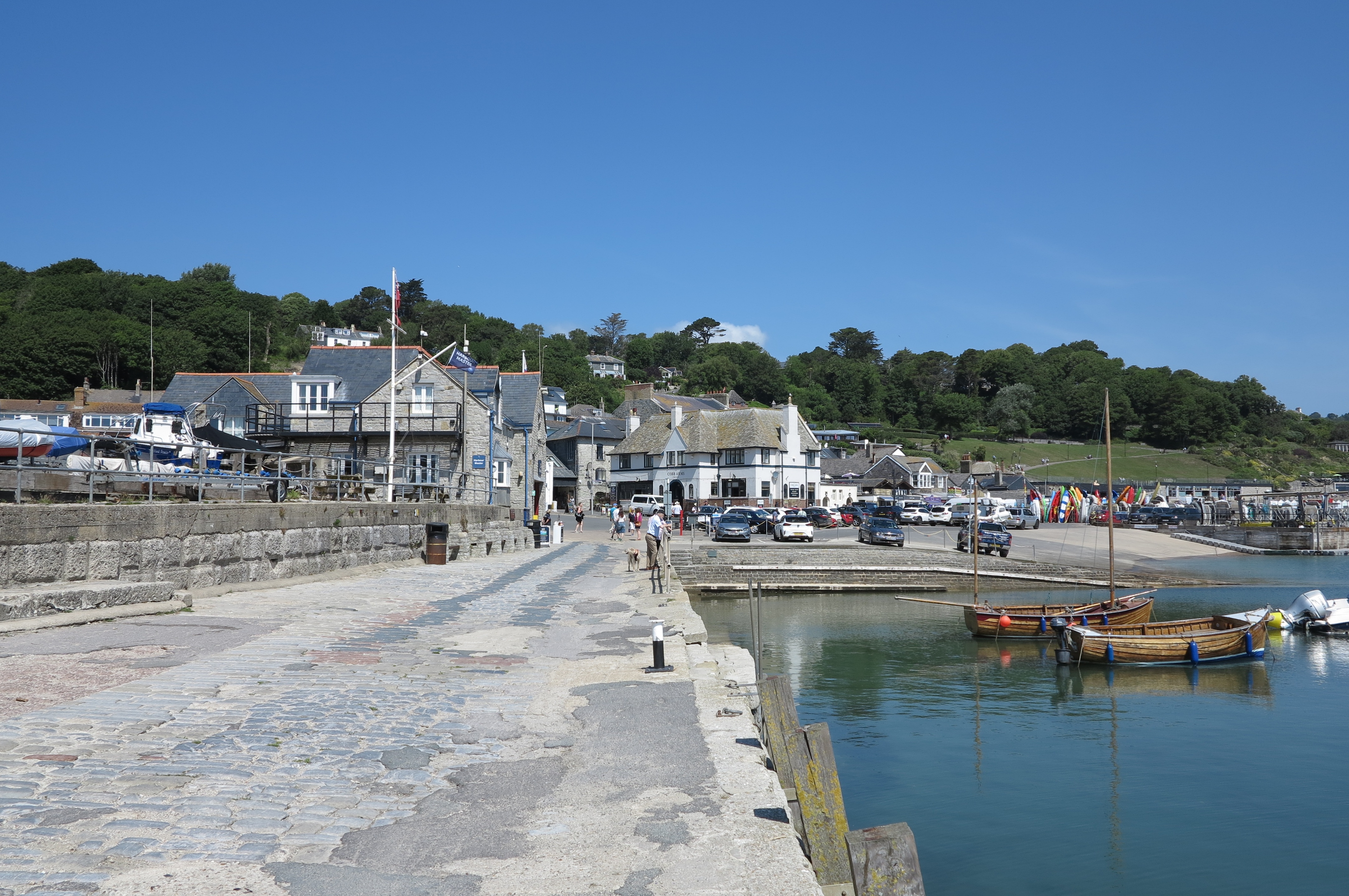 Lyme Regis is a large seaside resort town on the West Dorset coast. There is a harbour known as "The Cobb" and a long beach with sea front promenade. The beach is mostly pebble but with sand by the harbour. There are beach shops and cafés by the beach. Lyme Regis is about 25 miles east of Exeter and about 25 miles west of Dorchester. From Exeter take the A3052 to Lyme Regis or from Dorchester take the A35 and then turn onto the A3052 to approach Lyme Regis from the east. There are plenty of car parks park in Lyme Regis including a large car park by the harbour.
