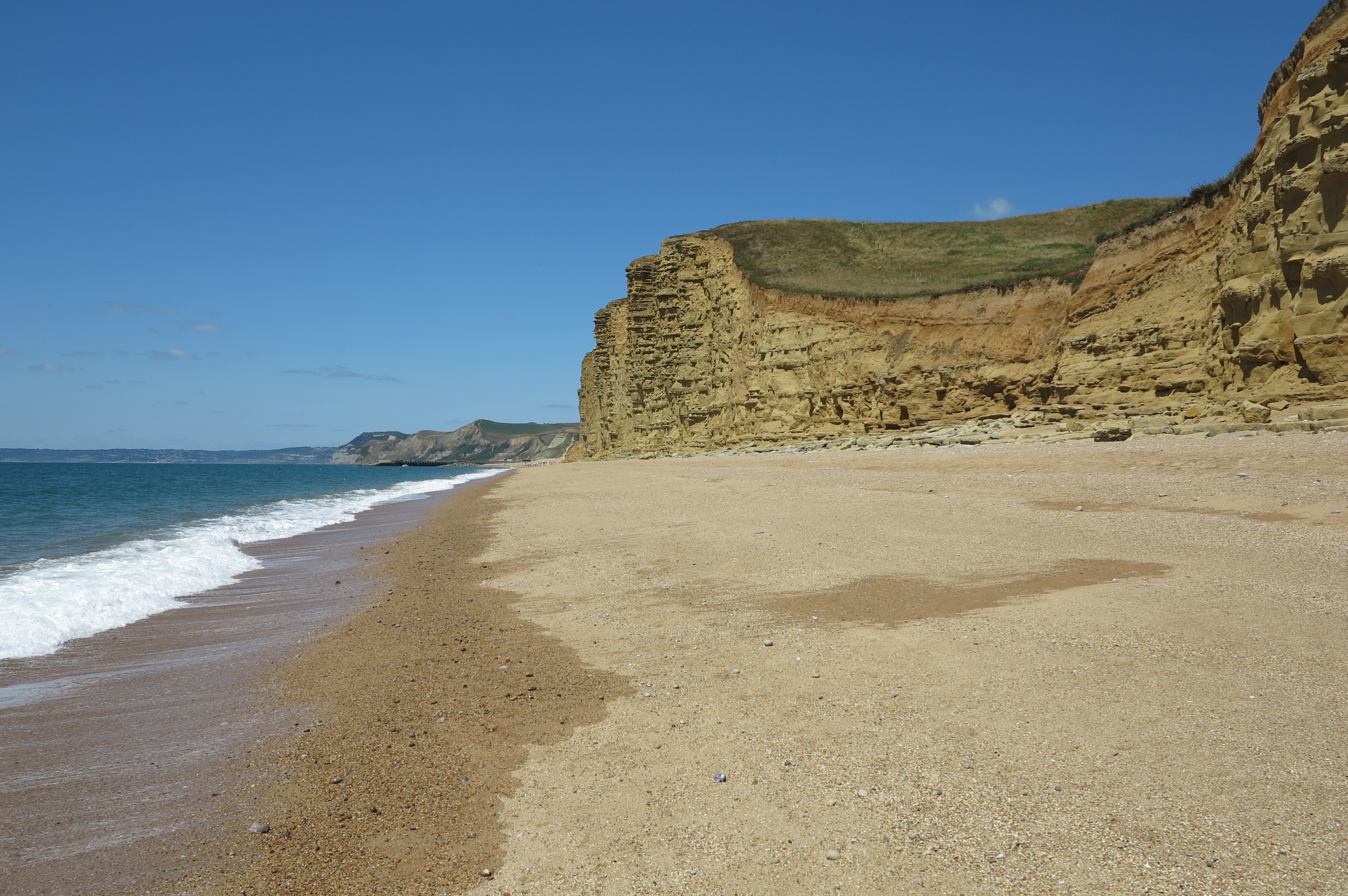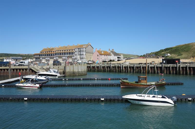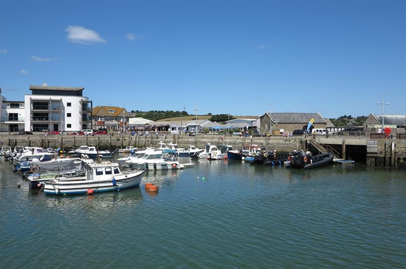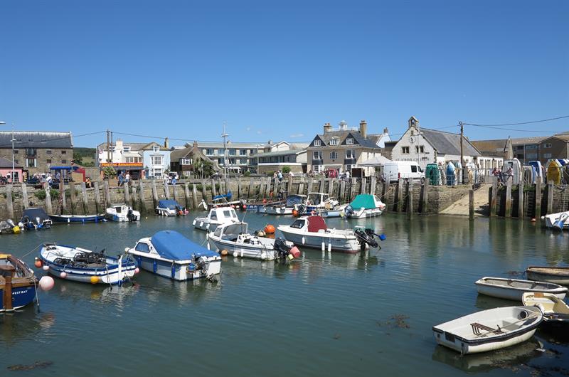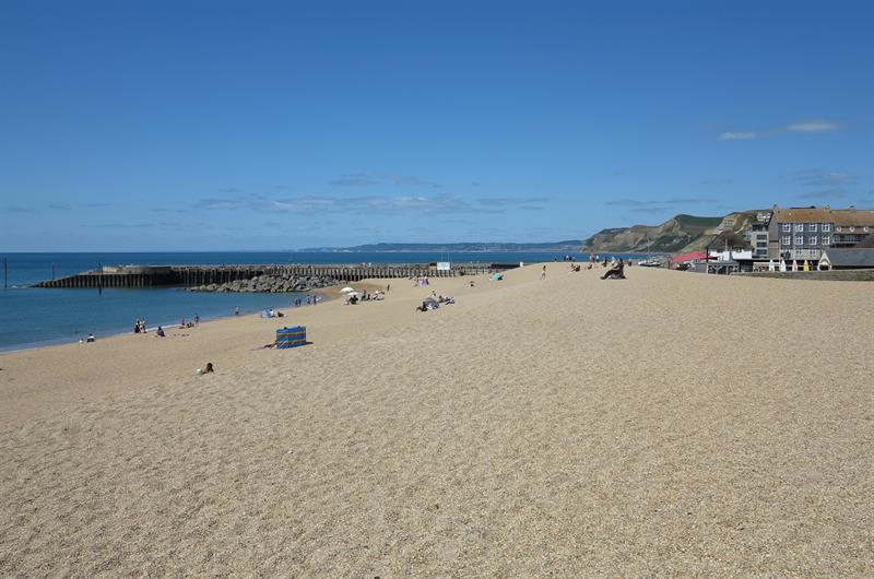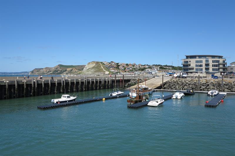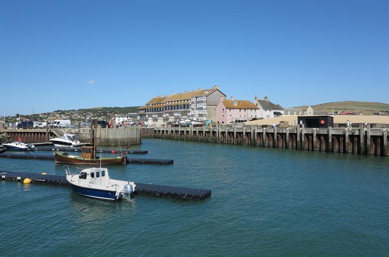 West Bay is a large harbour town to the south of Bridport in West Dorset. There is a large sandy beach to the east of the town. To the west of the town is a promenade and a small sandy beach. There is public access along the outer harbour walls and there are shops and cafés around the inner harbour. There is good walking on the coast path from West Bay. West Bay is about 2 miles south of Bridport. Bridport is about 40 miles from Exeter on the A30 and A35 and 16 miles from Dorchester on the A35. At Bridport follow signs for West Bay. There is plenty of parking in West Bay.
