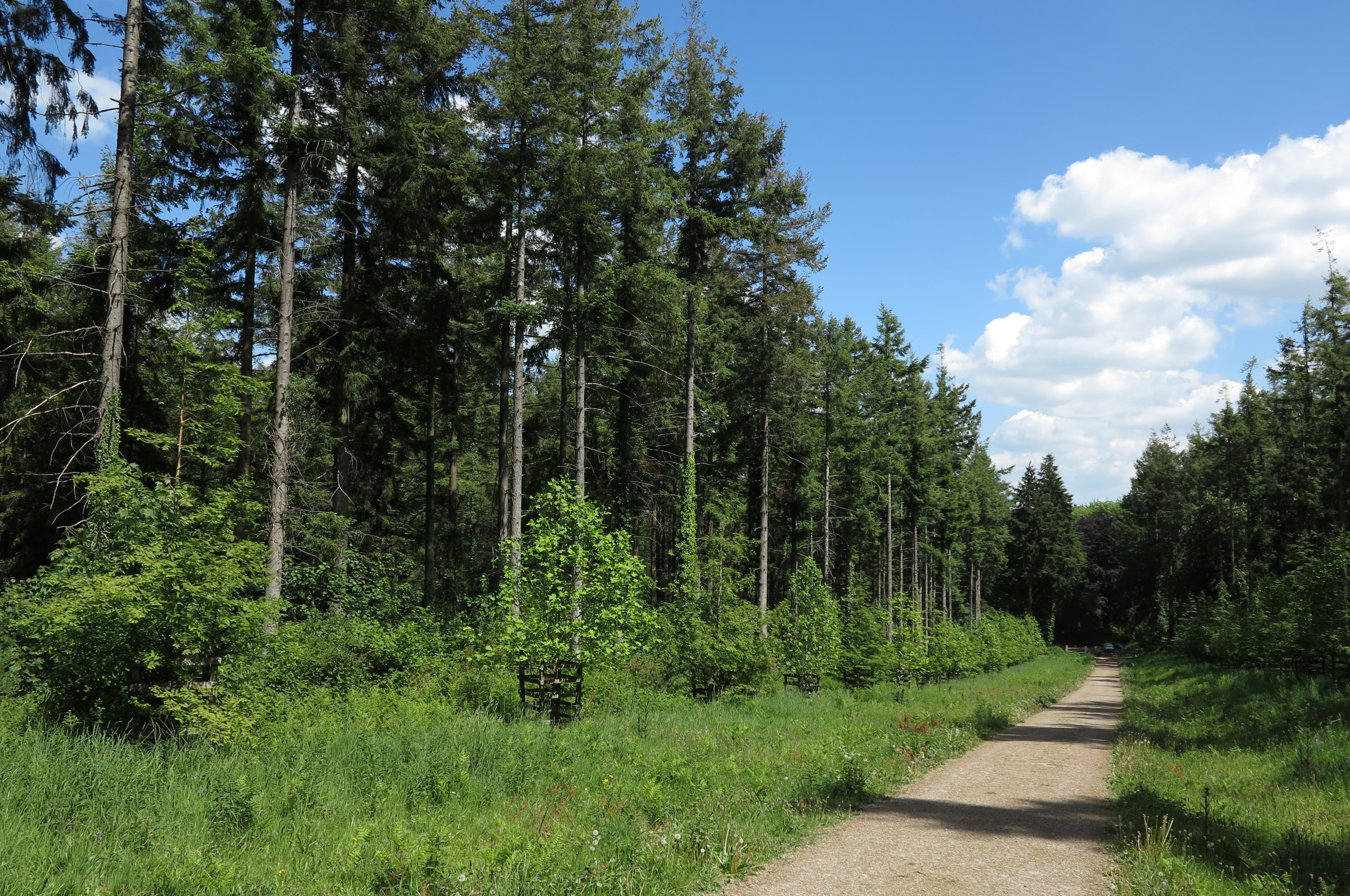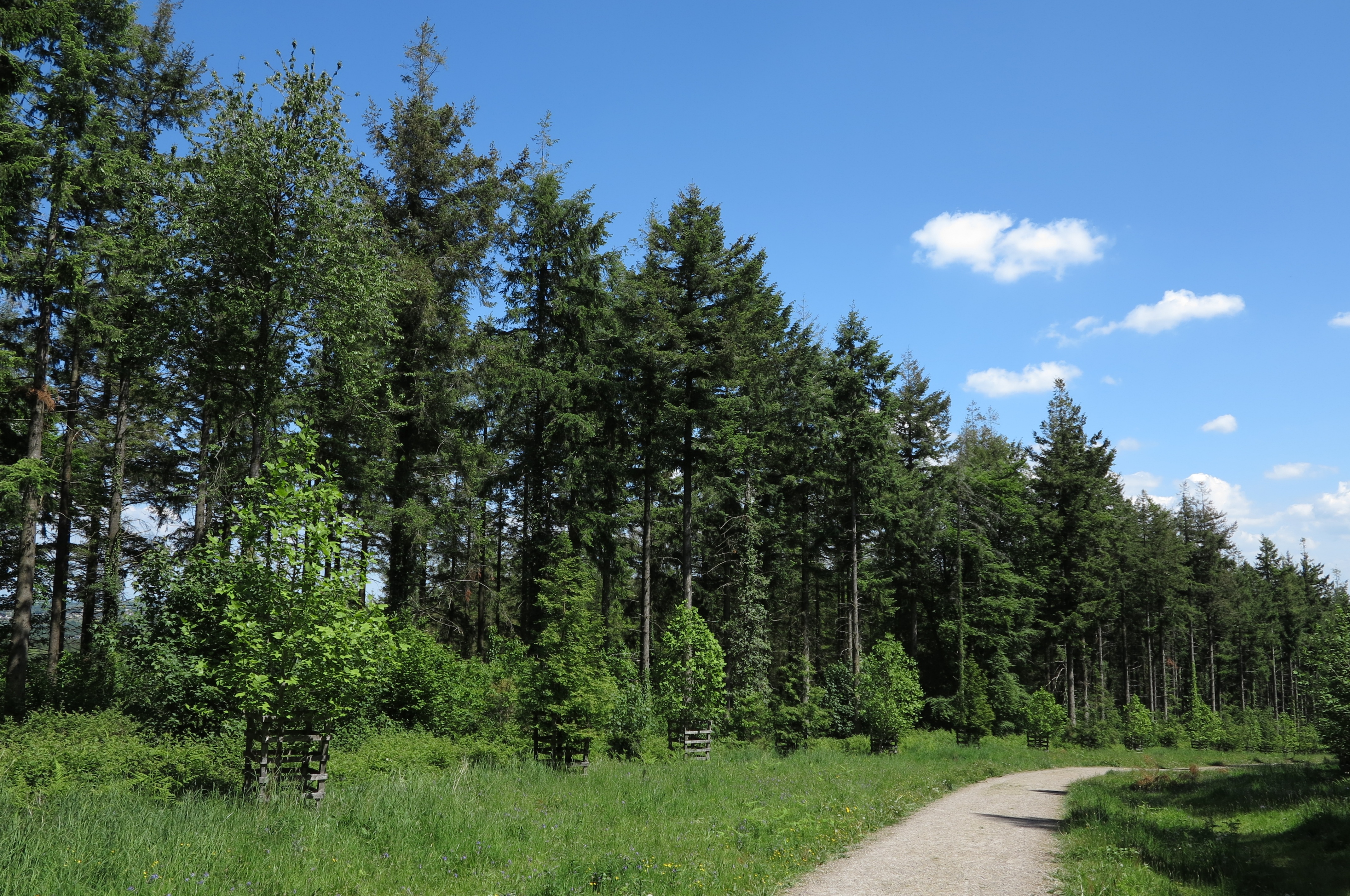 Flashdown Wood is a small woodland in North Devon. The wood was the first Forestry Commission Wood, with planting beginning in 1919. At Flashdown Wood today there is a main avenue through the woods with smaller trails leading off. Flashdown Wood is several miles east of Winkleigh which is about 12 miles north of Okehampton. Take the B3215 from Okehampton and at Belstone Corner turn left where signposted to Sampford Courtenay. At Sampford Courtenay at the mini roundabout turn right onto the A3072, then take the next left onto the A3124 (signposted to Winkleigh), then take the next left to continue on the A3124 to Winkleigh. Arriving at Winkleigh turn left to continue on the A3124, then turn right onto Eggesford Road. Continue on this road for several miles, then just after a right bend, the entrance to Flashdown Wood is on the right. There are other routes to Flashdown Wood such as the A377 from Crediton. At Flashdown Wood, drive through the entrance and at the end of the lane there is space for 3-4 cars to park.