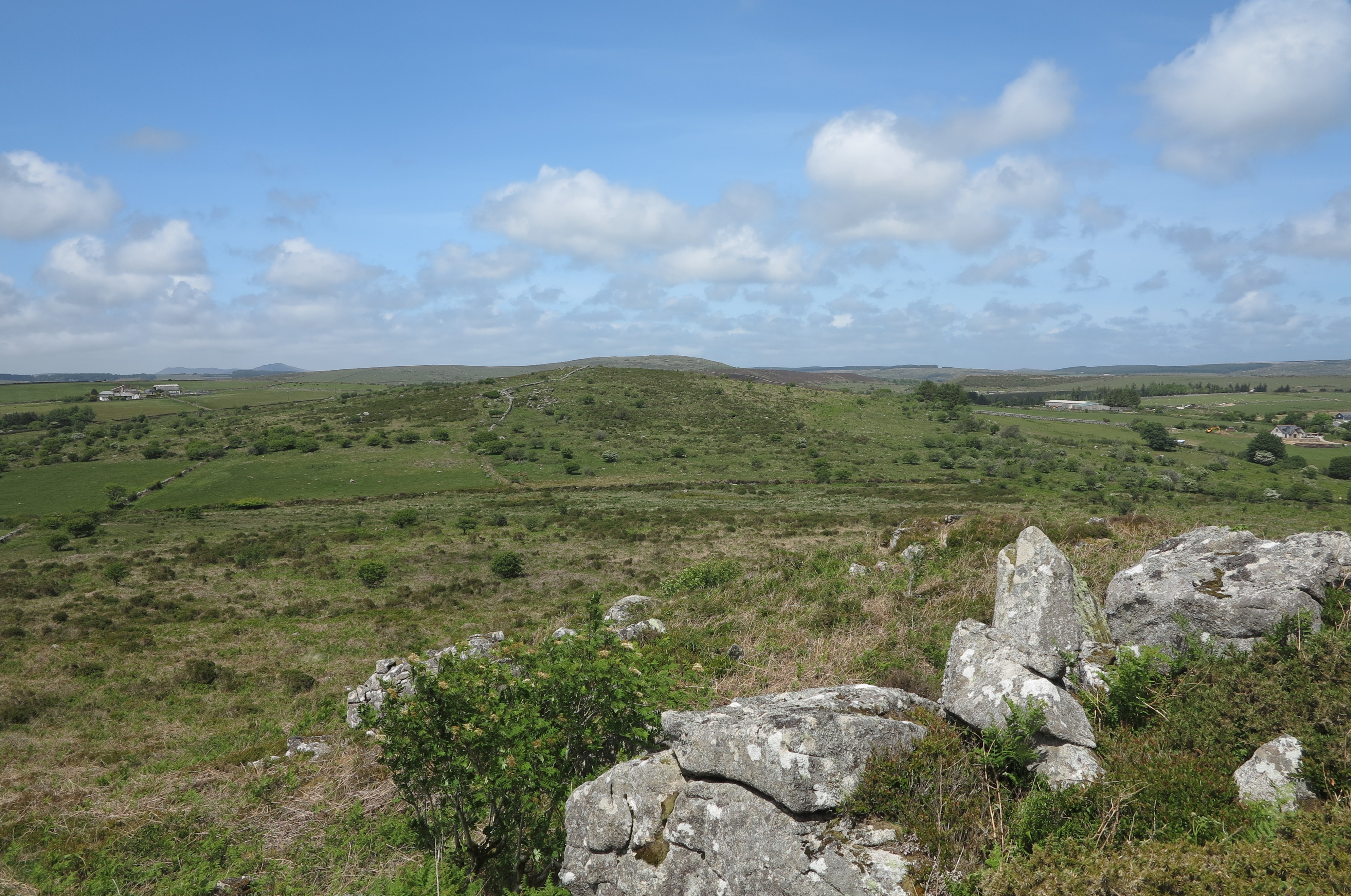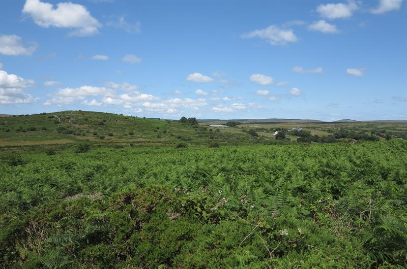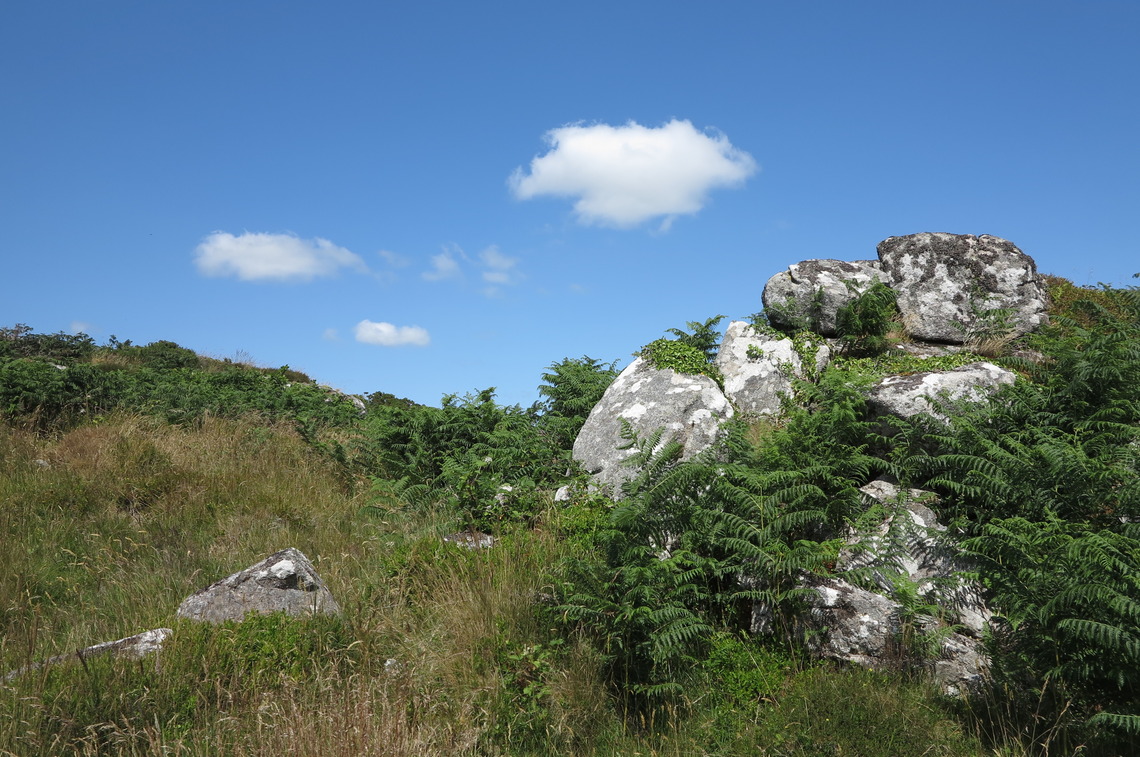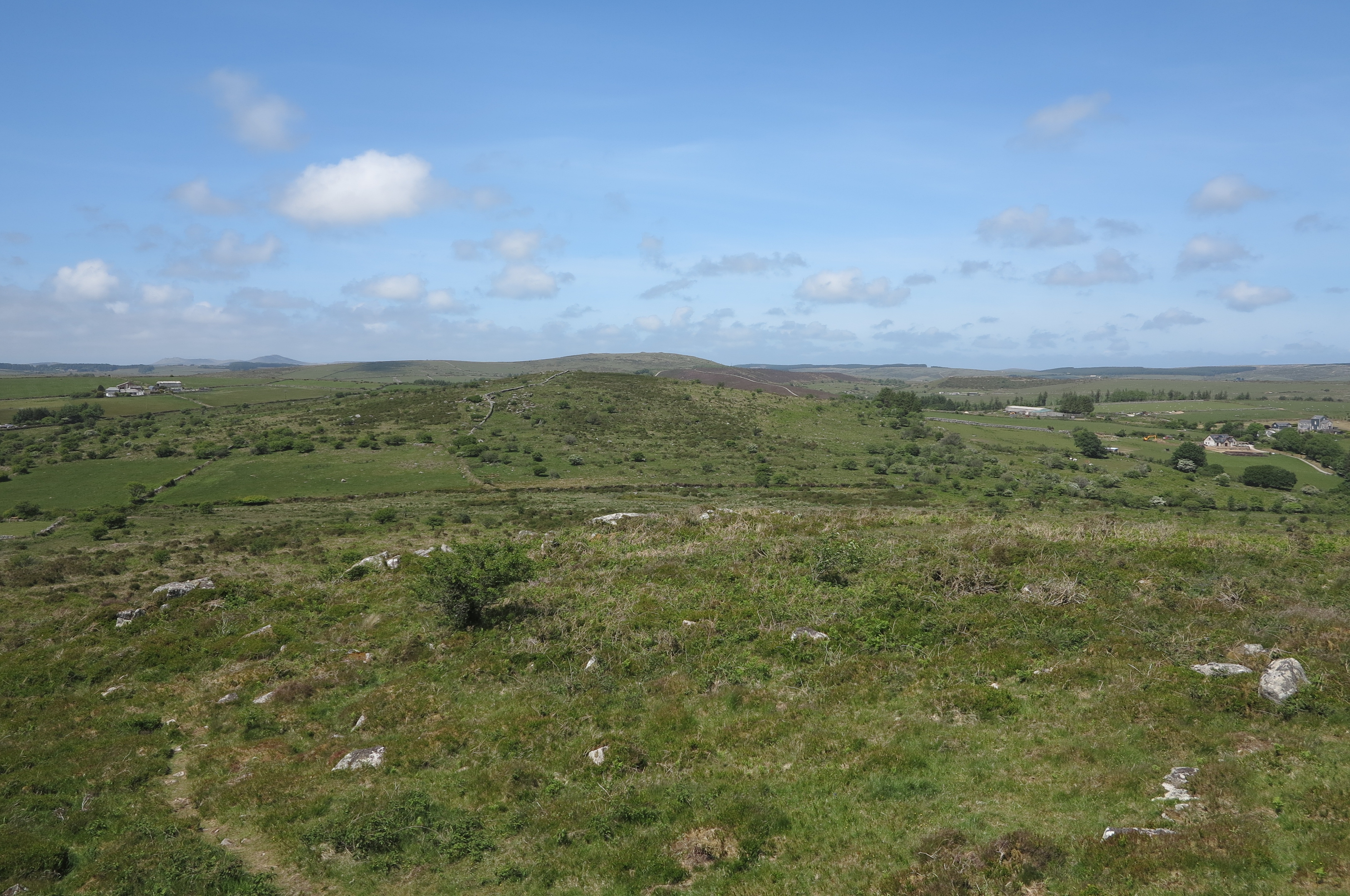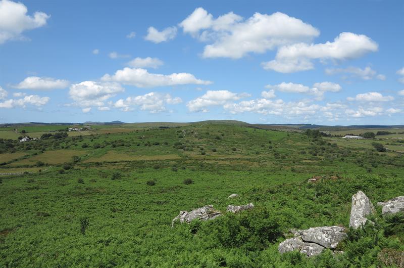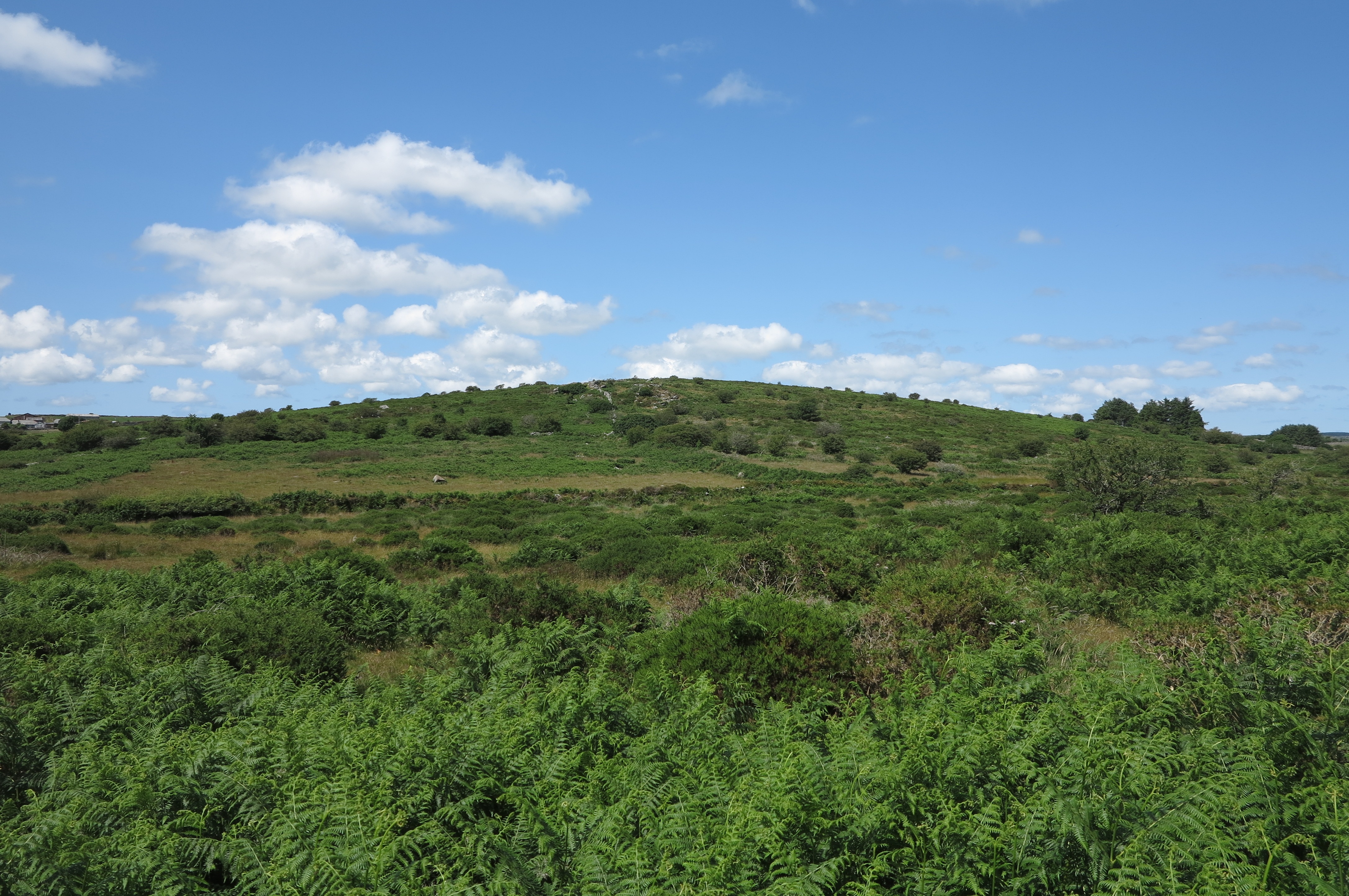 Muttons Downs is a small area of open access moorland on the southern edge of Bodmin Moor, north of St Neot. There is a turning to St Neot on the A38, west of Liskeard and Dobwalls. At St Neot, turn right where signposted to St Cleer and take the next left signposted to Colliford Lake. Muttons Downs can be accessed from paths on this road. There is very limited parking on this road with a small layby which can be used for parking (but note that it is also used for storing gravel). Park in the layby and walk on the road north for about five minutes until on the right there is a signposted public footpath, which leads to moorland with Muttons Downs to the north. Note that there is no clear path to the top of Muttons Downs and it can be difficult to reach the top of the downs due to rocks and bracken.