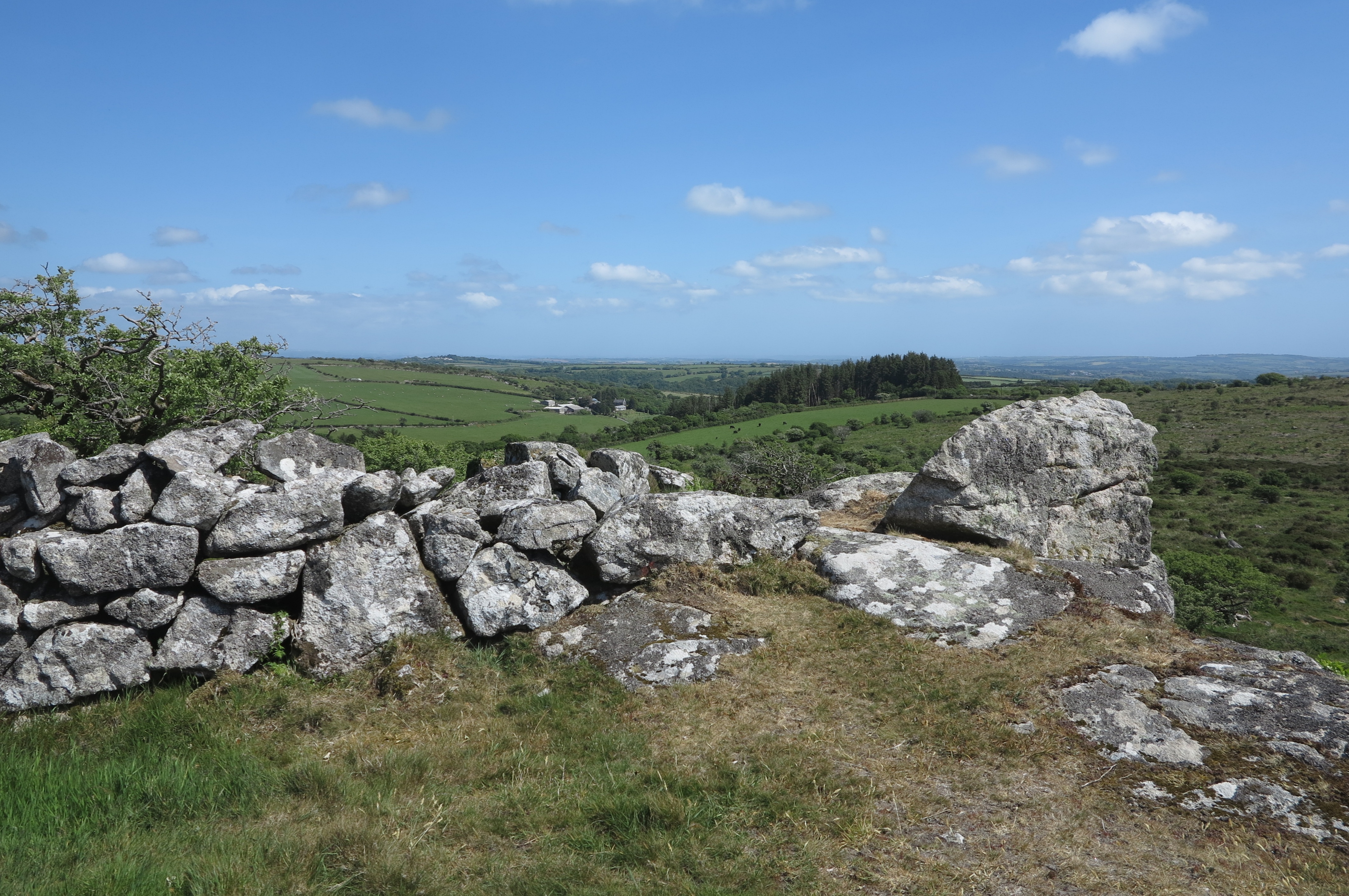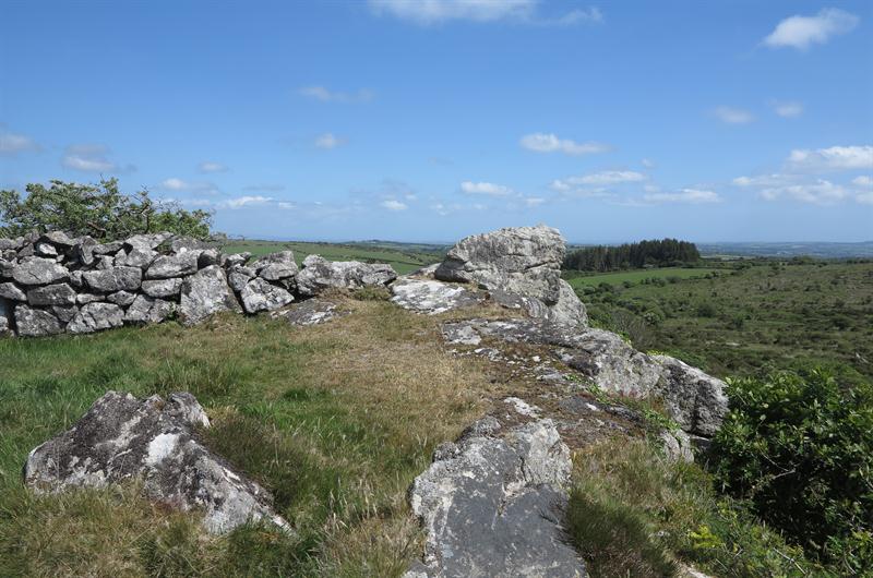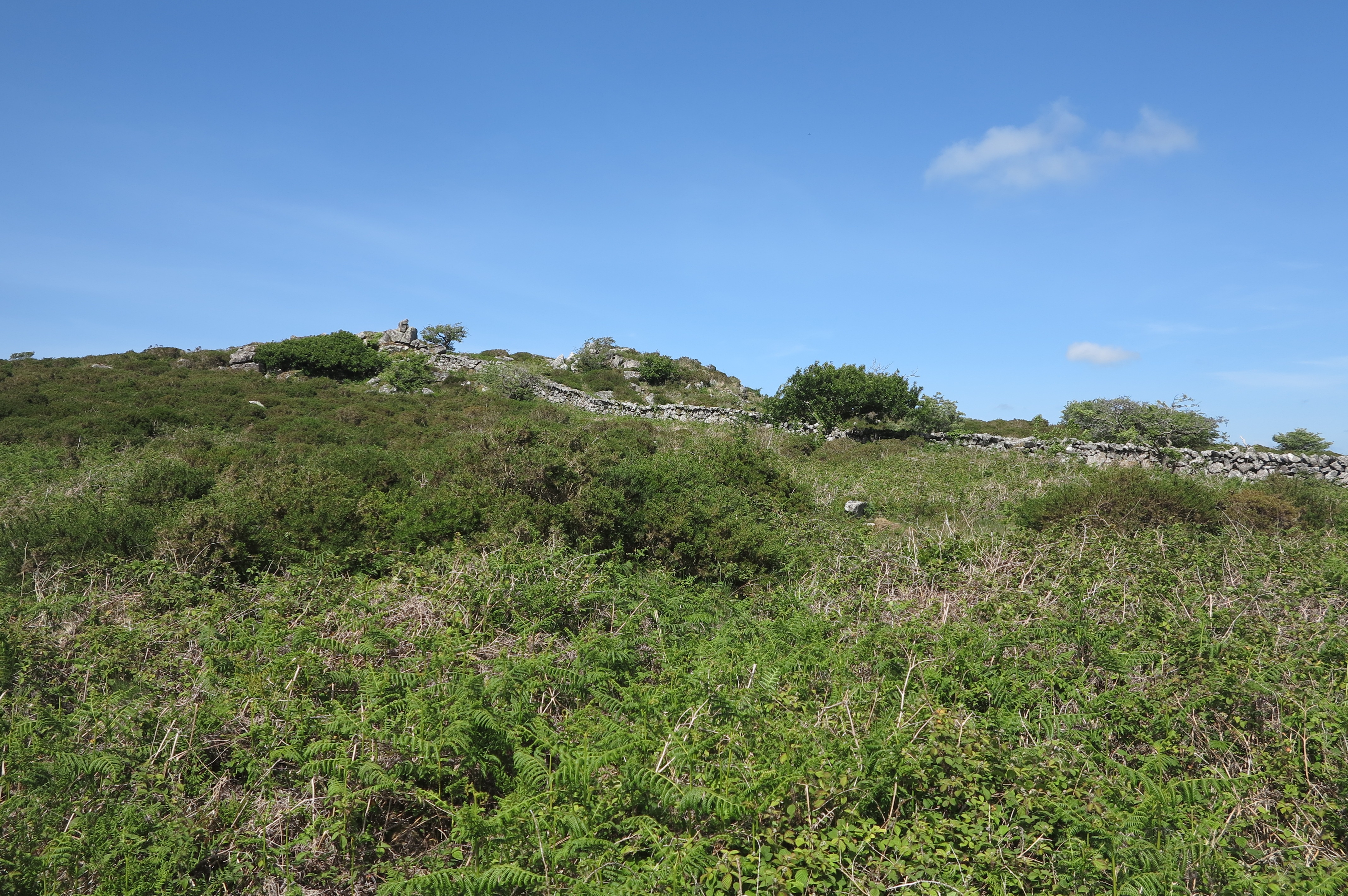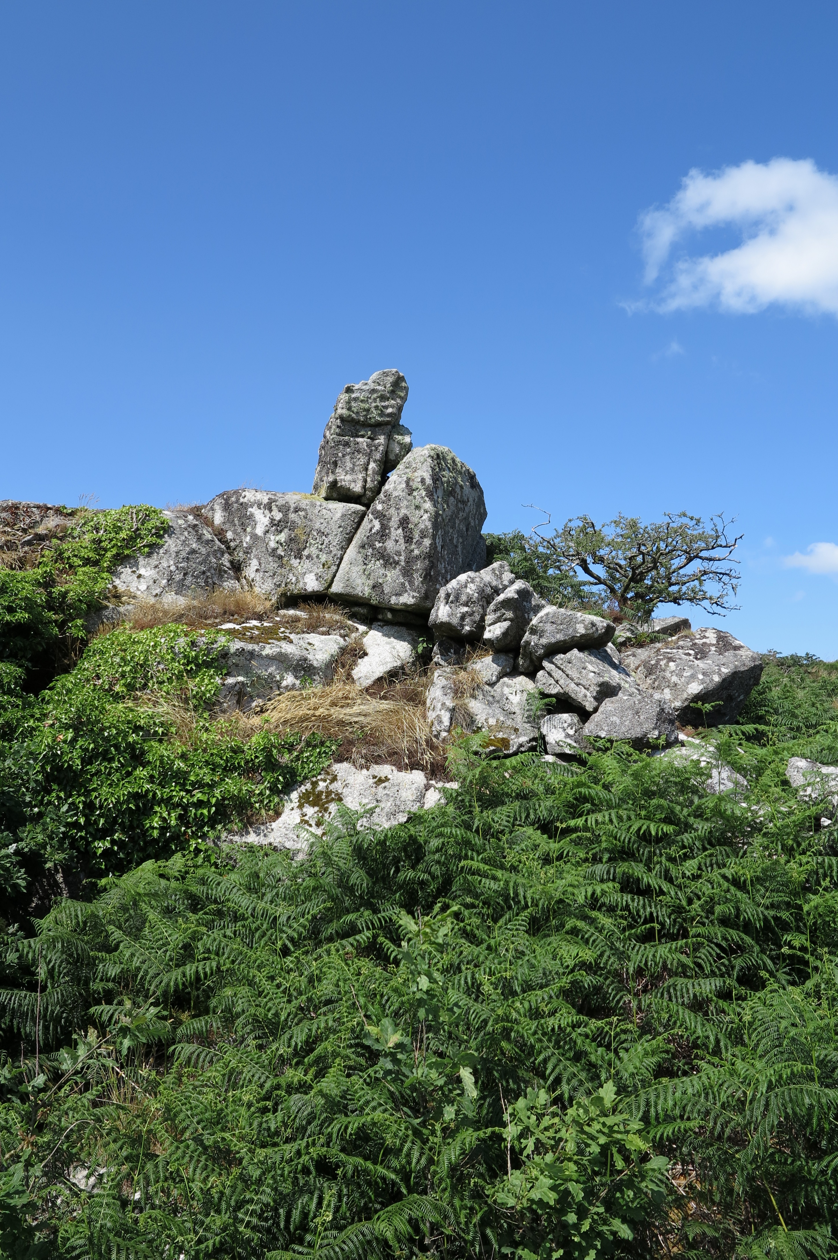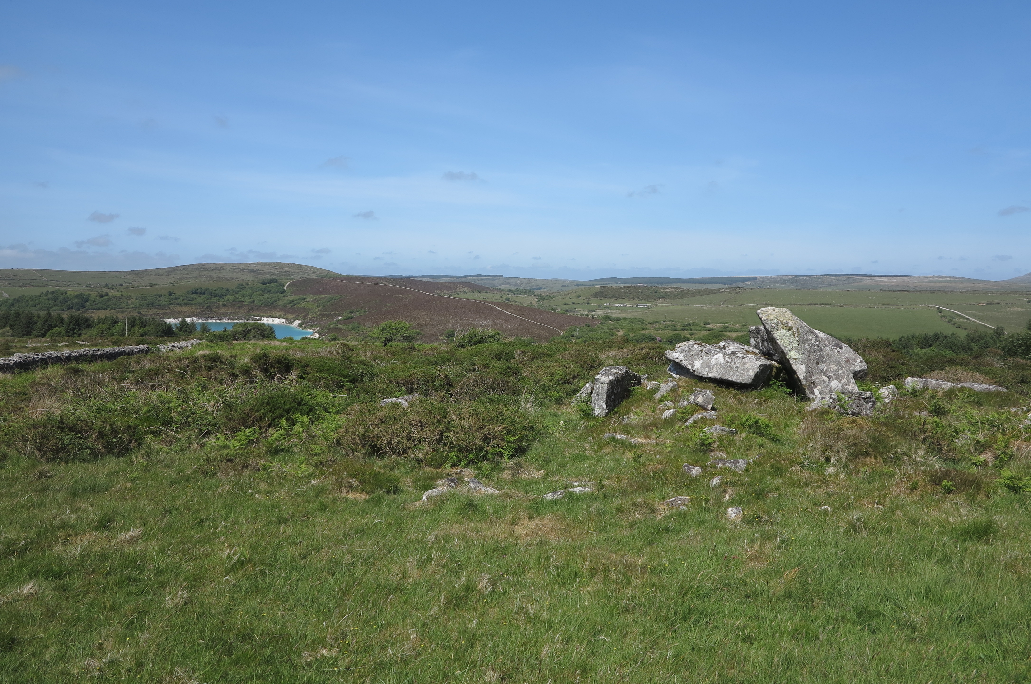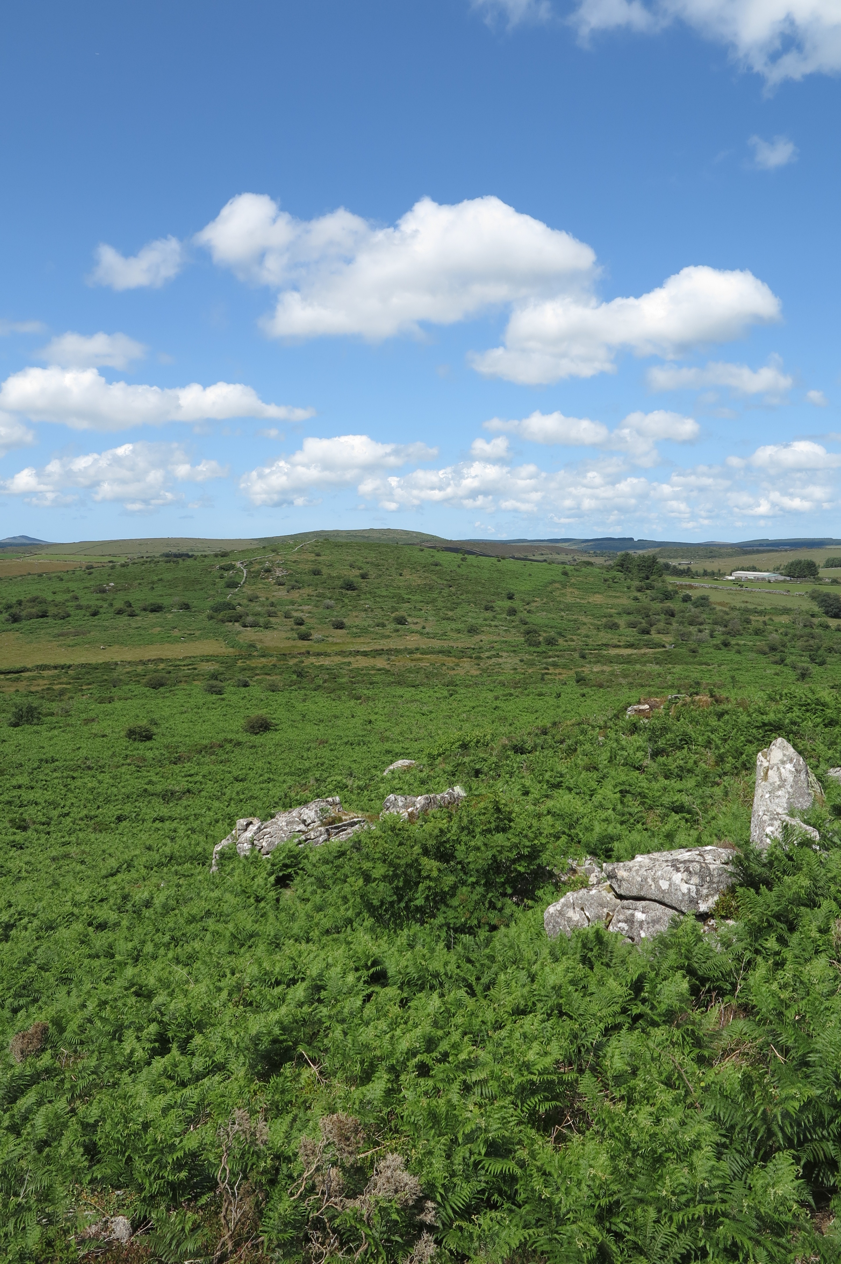 Muttons Downs is a small area of open access moorland on the southern edge of Bodmin Moor, north of St Neot. There is a turning to St Neot on the A38, west of Liskeard and Dobwalls. At St Neot, turn right where signposted to St Cleer and take the next left signposted to Colliford Lake. Muttons Downs can be accessed from paths on this road. There is very limited parking on this road with a small layby which can be used for parking (but note that it is also used for storing gravel). Park in the layby and walk on the road north for about five minutes until on the right there is a signposted public footpath, which leads to moorland with Muttons Downs to the north. Note that there is no clear path to the top of Muttons Downs and it can be difficult to reach the top of the downs due to rocks and bracken.