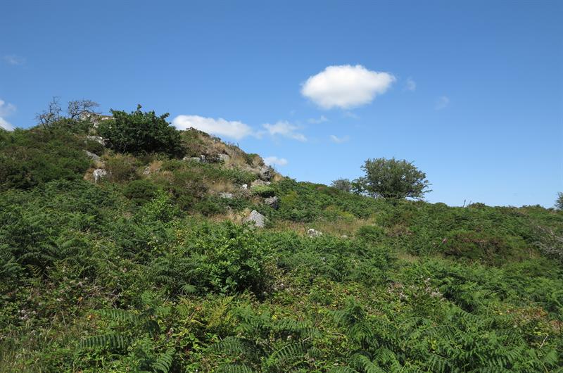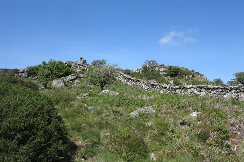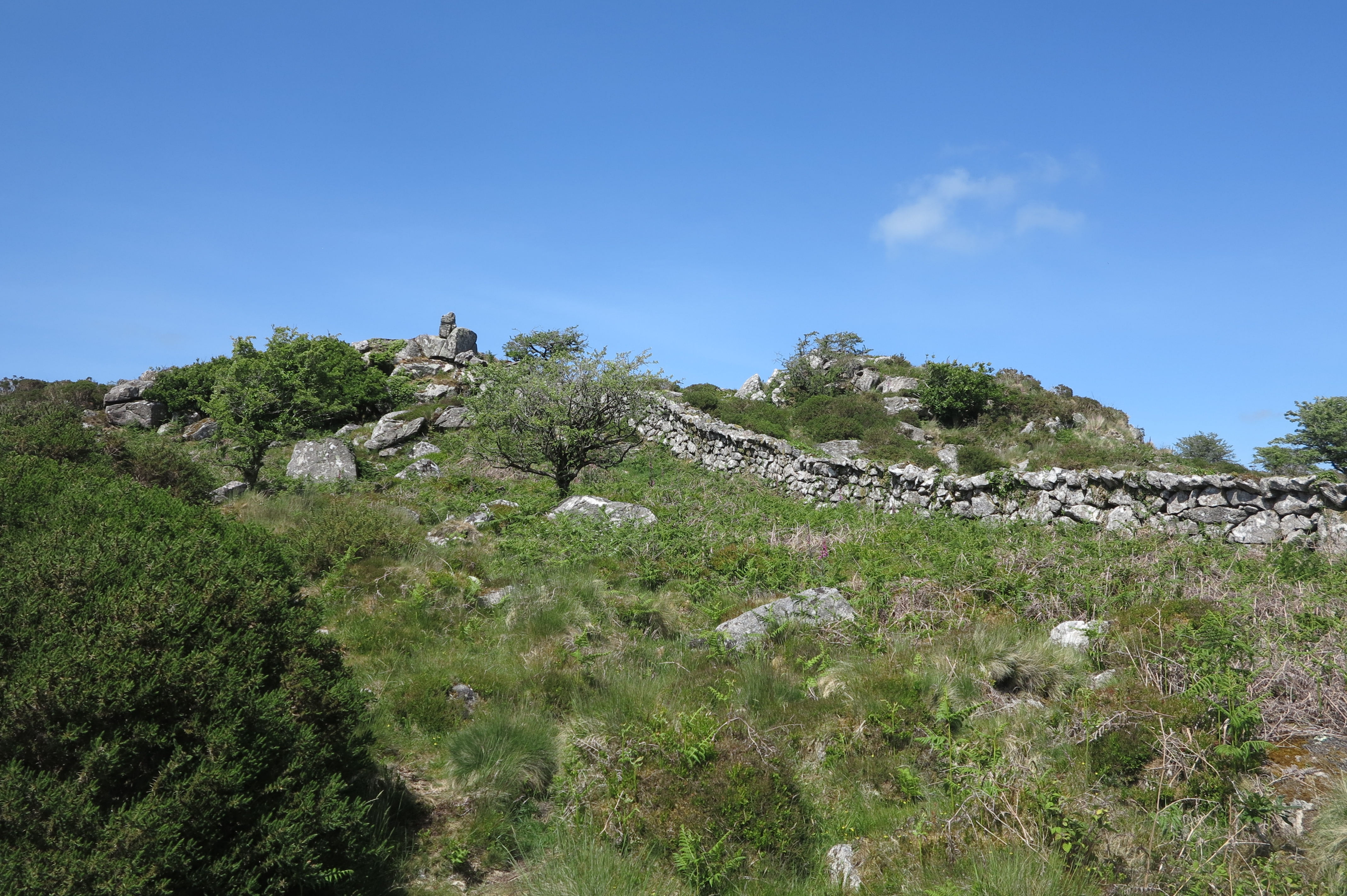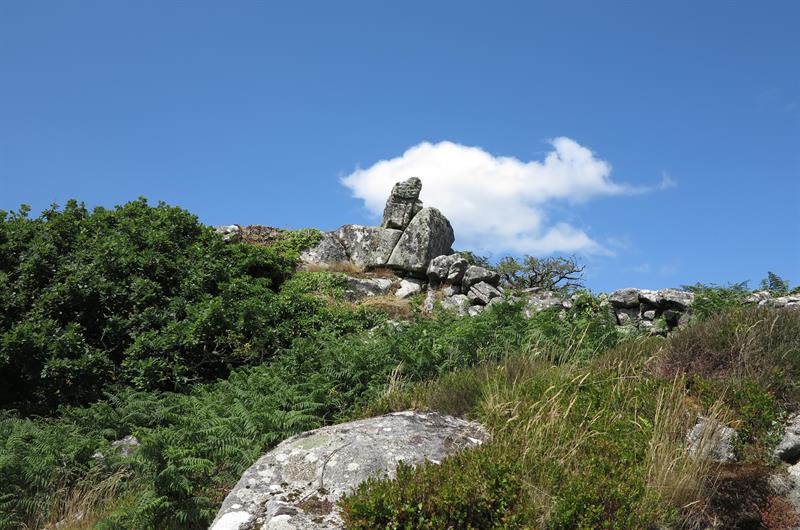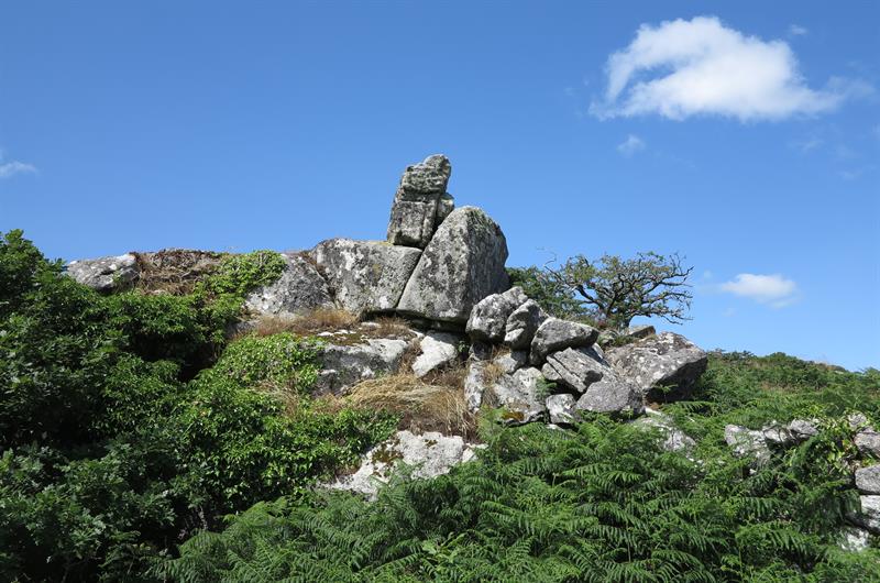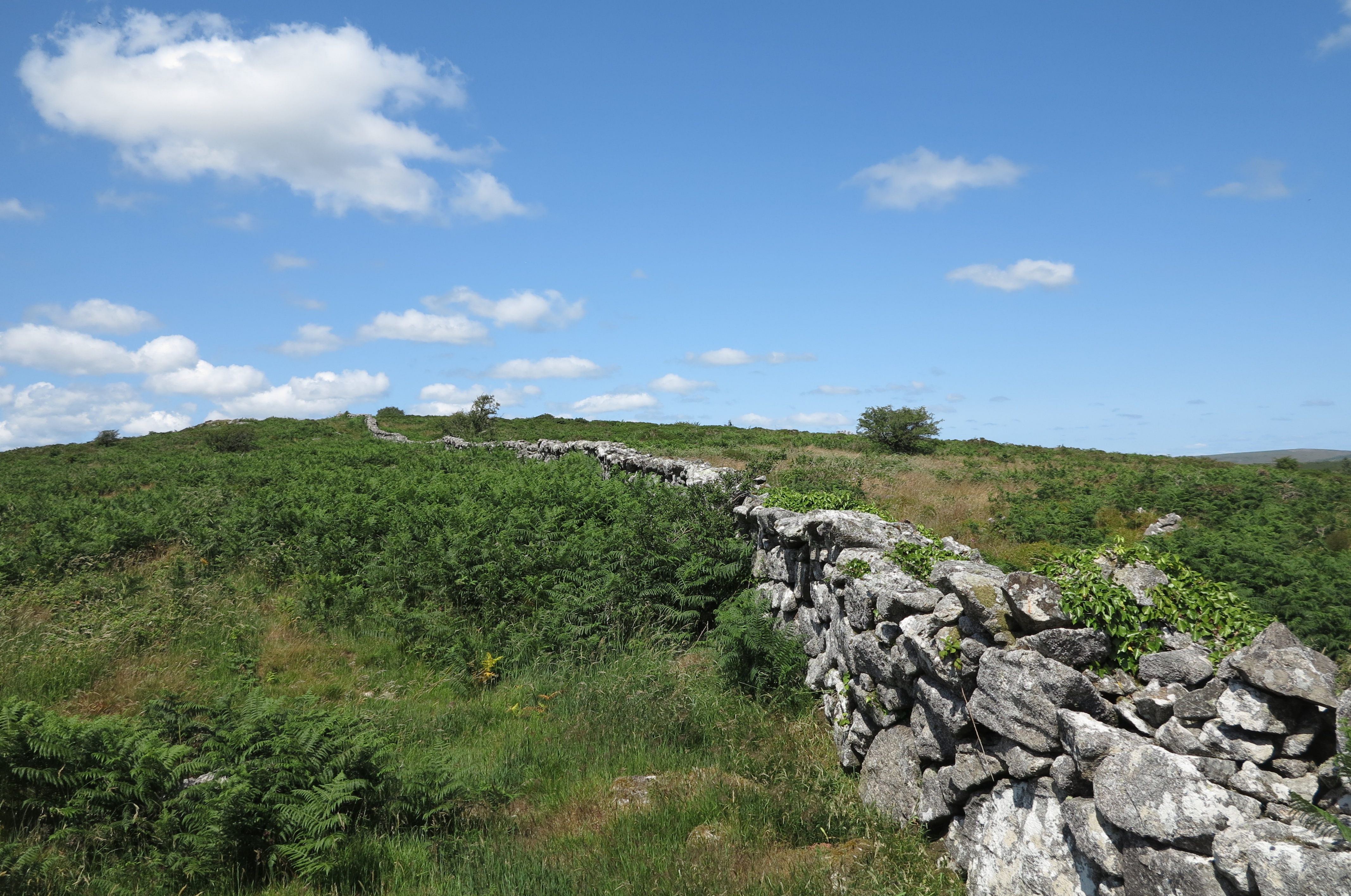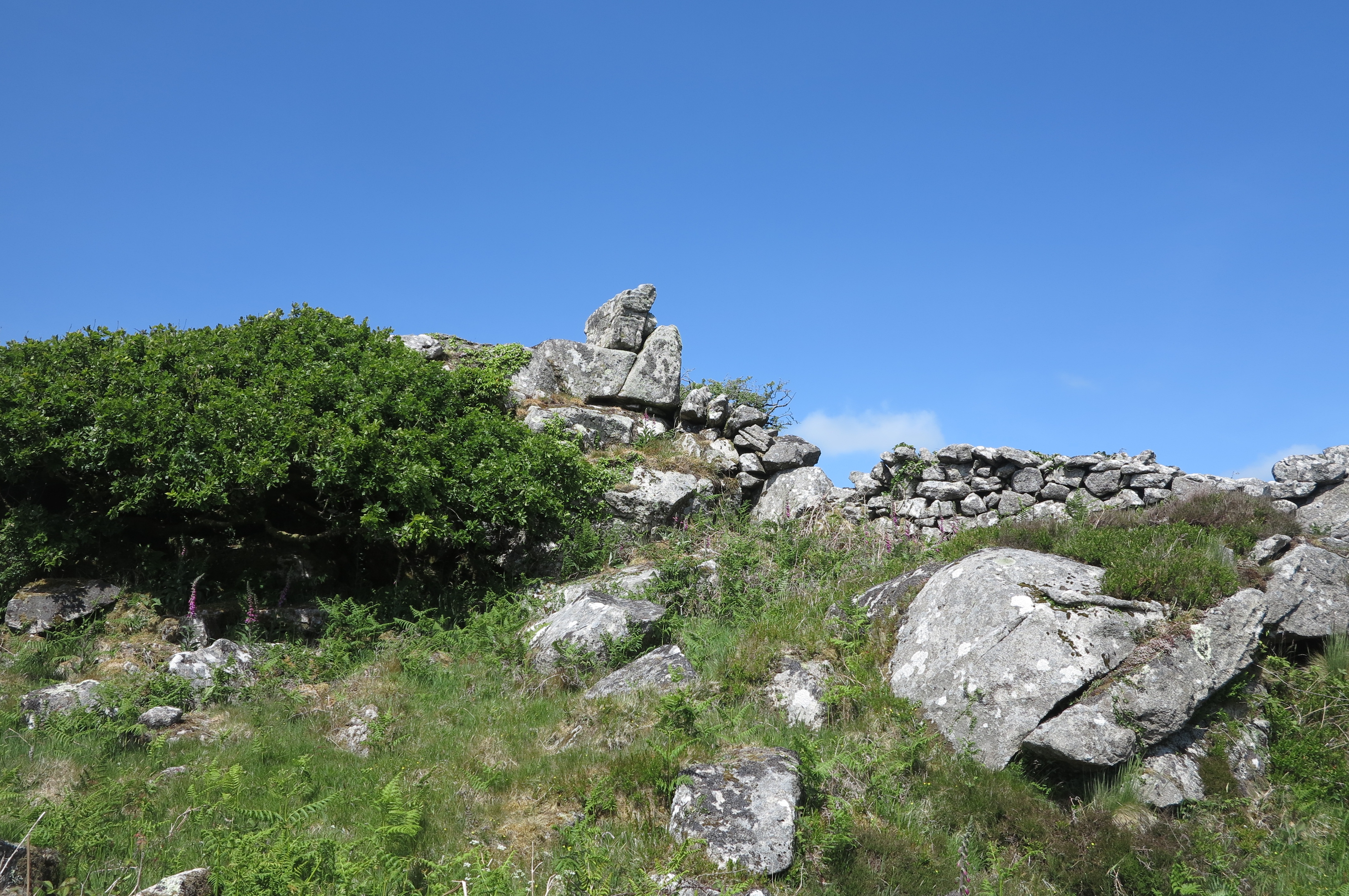 Muttons Downs is a small area of open access moorland on the southern edge of Bodmin Moor, north of St Neot. There is a turning to St Neot on the A38, west of Liskeard and Dobwalls. At St Neot, turn right where signposted to St Cleer and take the next left signposted to Colliford Lake. Muttons Downs can be accessed from paths on this road. There is very limited parking on this road with a small layby which can be used for parking (but note that it is also used for storing gravel). Park in the layby and walk on the road north for about five minutes until on the right there is a signposted public footpath, which leads to moorland with Muttons Downs to the north. Note that there is no clear path to the top of Muttons Downs and it can be difficult to reach the top of the downs due to rocks and bracken.