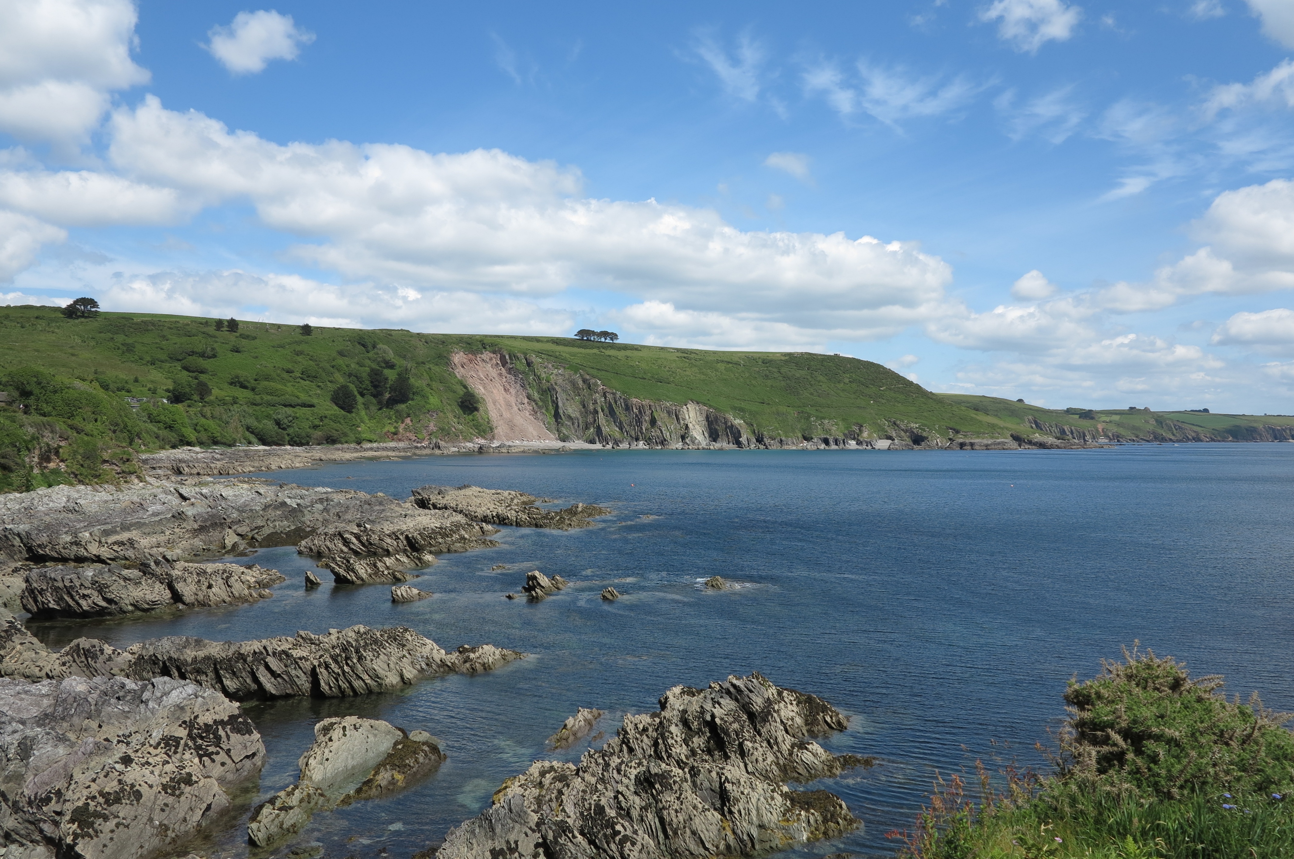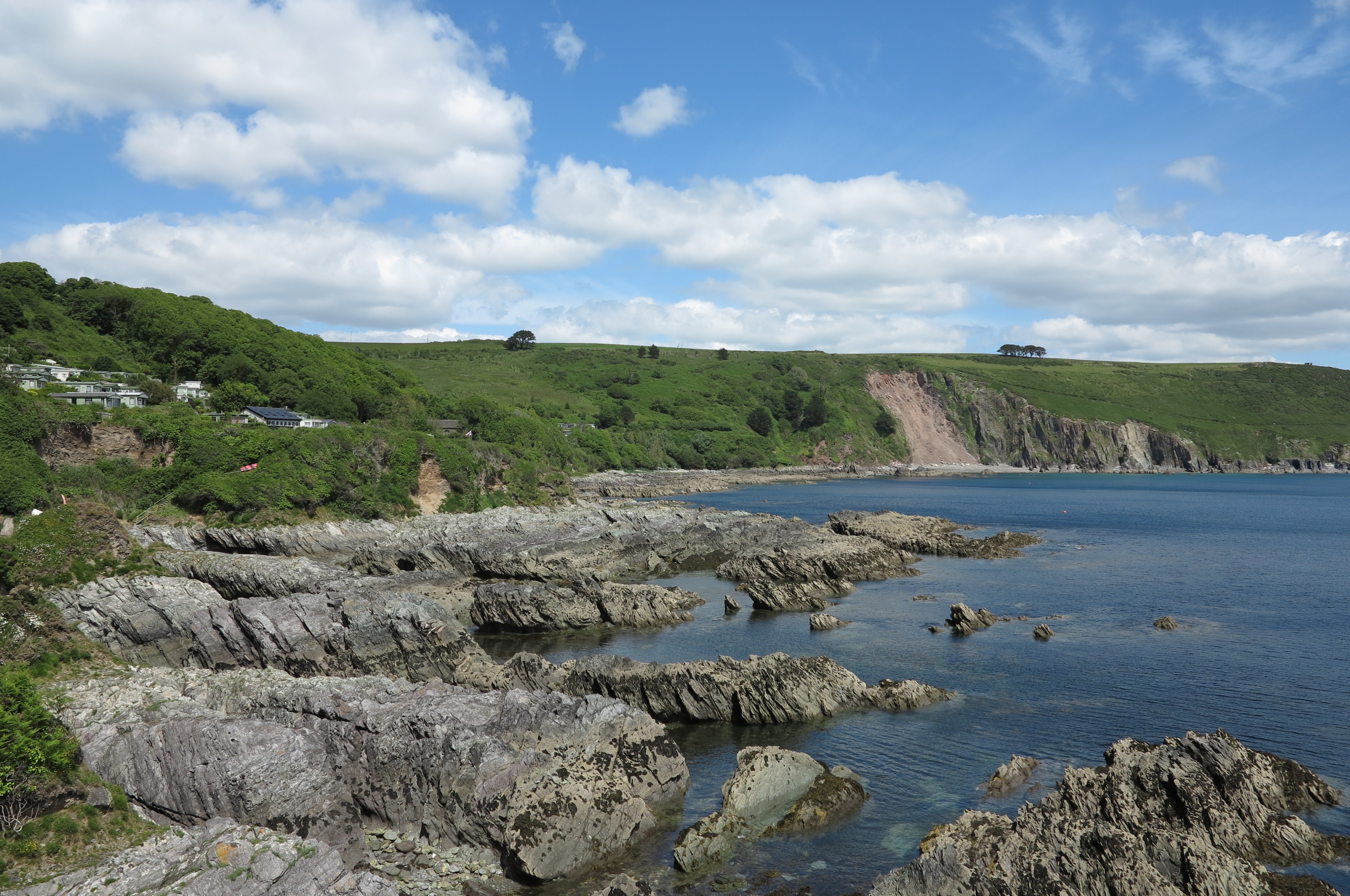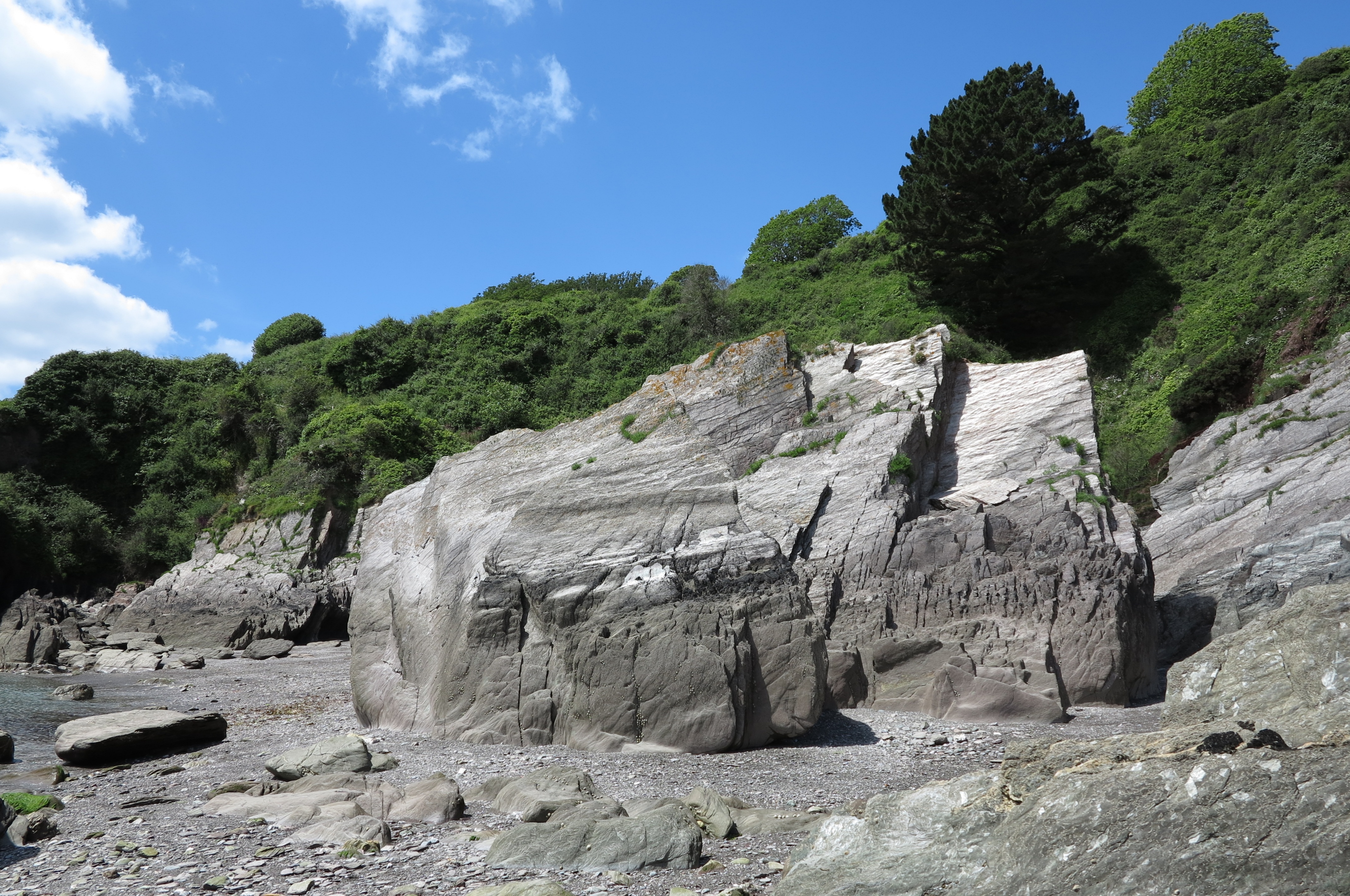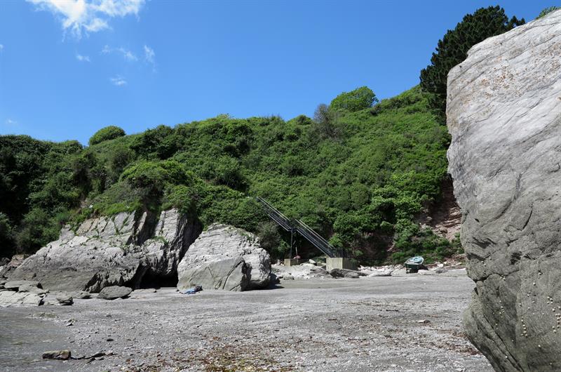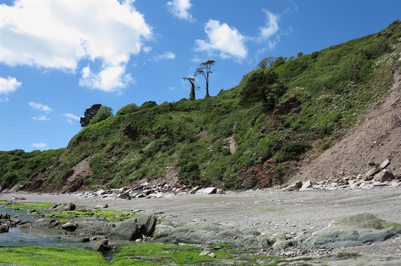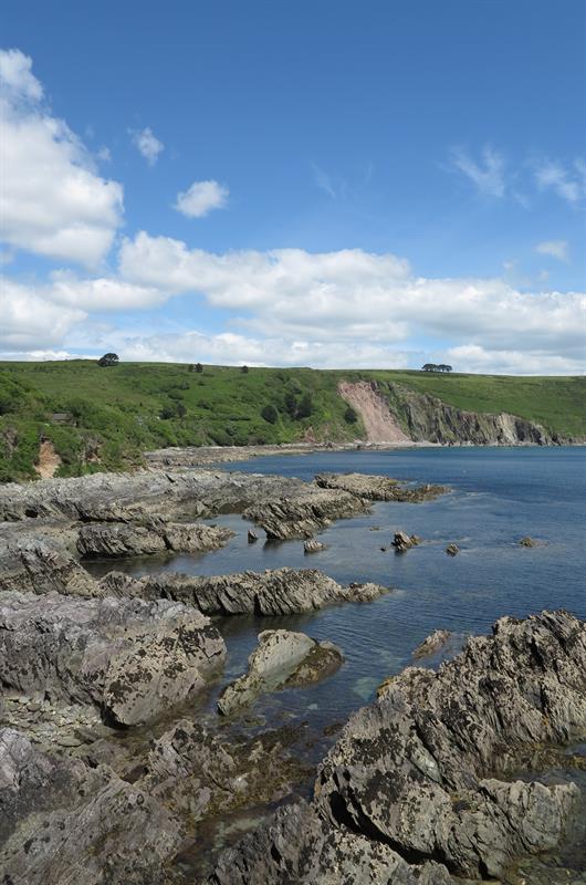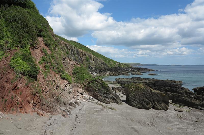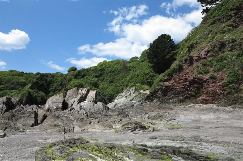 Stoke Beach is a picturesque beach below a large caravan park called Revelstoke Park on the South Devon coast. The beach is grey sand and shingle and there are large rocky areas with rock pools. The beach is usually quiet as parking is very limited and there are no facilities. Stoke Beach is about a couple of miles from Noss Mayo which is about 10 miles from Plymouth. Take the A379 out of Plymouth and turn onto the B3186 at Yealmpton. Follow this road to Newton Ferrers and drive through Newton Ferrers to Bridgend and follow the sign to Noss Mayo. At Noss Mayo continue up the hill past the church. Continue on this road out of Noss Mayo into countryside and continue on this road until it reaches a left bend. Opposite the bend there is a small lane signposted to Stoke Beach. Follow this lane down to the car park above Revelstoke Park.