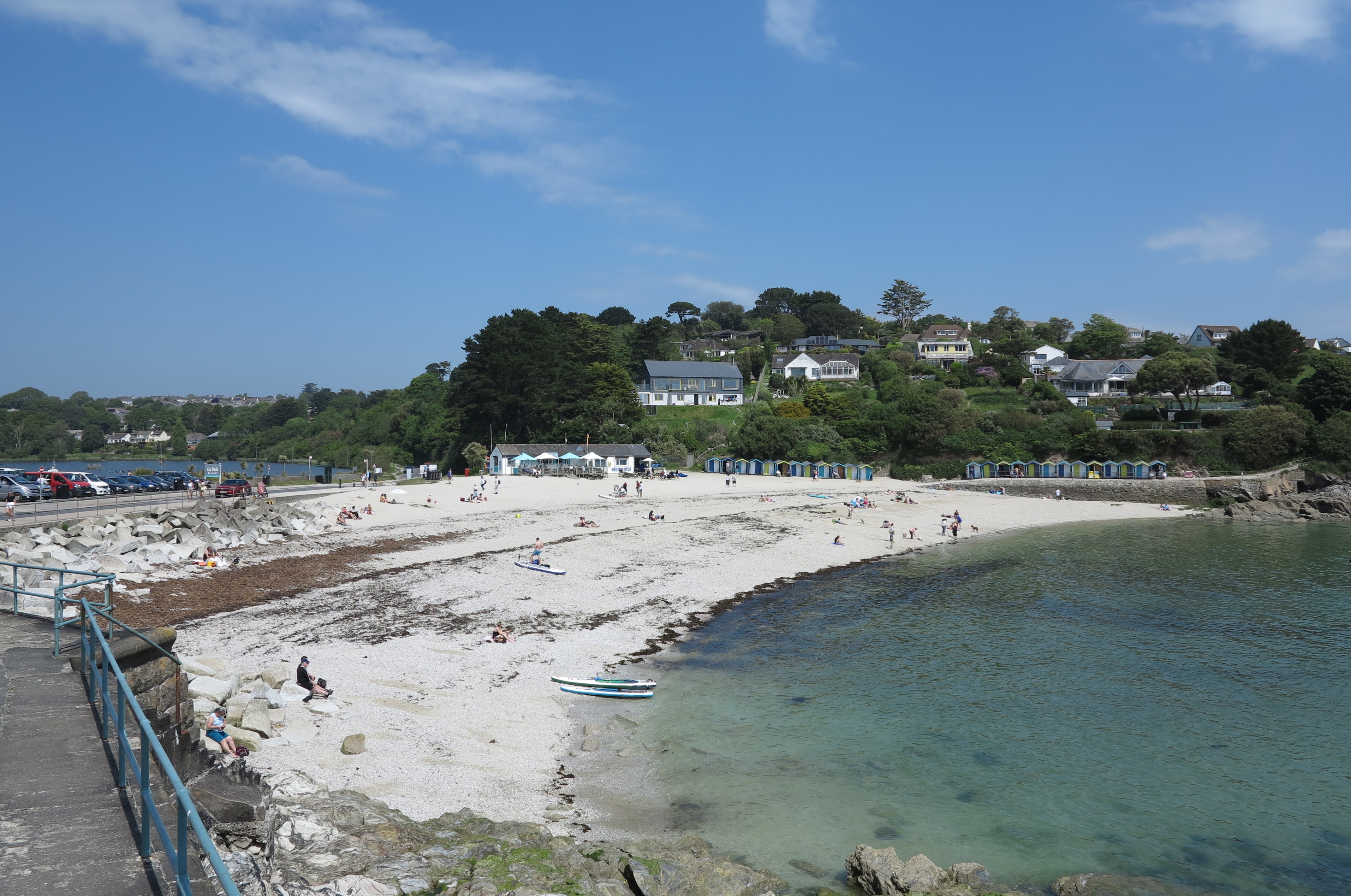 Swanpool Beach is a small but popular sand and shingle beach on the southern edge of Falmouth. There is a café on the beach and a car park over the road from the beach. Behind the beach is a small lake which is popular with birds such as swans, ducks and coots. The lake can be walked around but this is partly on the road. Falmouth is about 10 miles from Truro on the A39. At Falmouth follow the A39 around Falmouth and then turn right at a mini roundabout onto Pennance Road (signposted to "Beaches"). Then turn right onto Swanpool Hill (signposted to Swanpool Beach and Maenporth) and follow this road to the beach.