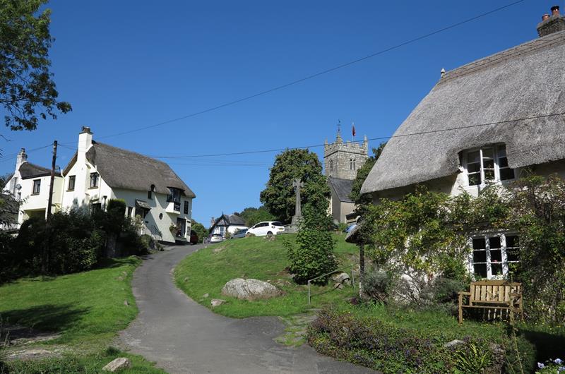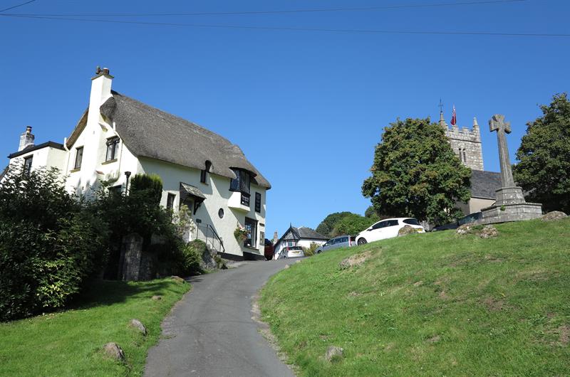 Lustleigh is a small village with picturesque thatched cottages on east Dartmoor in Devon. There is a village shop, tea room and pub. Lustleigh is about 4 miles north of Bovey Tracey on the A382. There is a signposted turning to Lustleigh on the A382. There is no car park in Lustleigh, only very limited road parking.