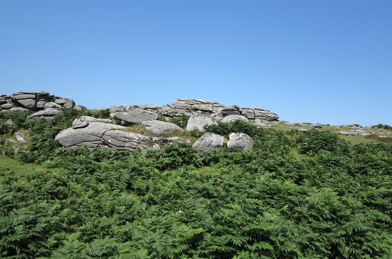 Smallacombe Rocks is a large rock outcrop on the south east of Dartmoor near Haytor Rocks. Smallacombe Rocks is on open moorland and there is good walking to nearby tors and fine views. There are a number of routes to Haytor. From Plymouth take the A38 east and at the Goodstone junction turn off where signposted to Newton Abbott (A383). On the slip road, turn left where signposted to Widecombe and Sigford. Continue on this road for several miles up onto Dartmoor, then turn right at the Cold East crossroads. Continue on this road, then at the Hemsworthy Gate junction turn right where signposted to Haytor. Continue on this road to Haytor Rocks. There is a pay and display car park just below Haytor Rocks, but note that there are free layby car parks nearby. From Haytor Rocks walk north west to Smallacombe Rocks.
