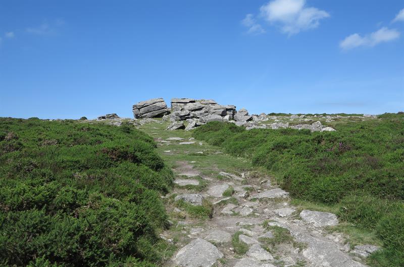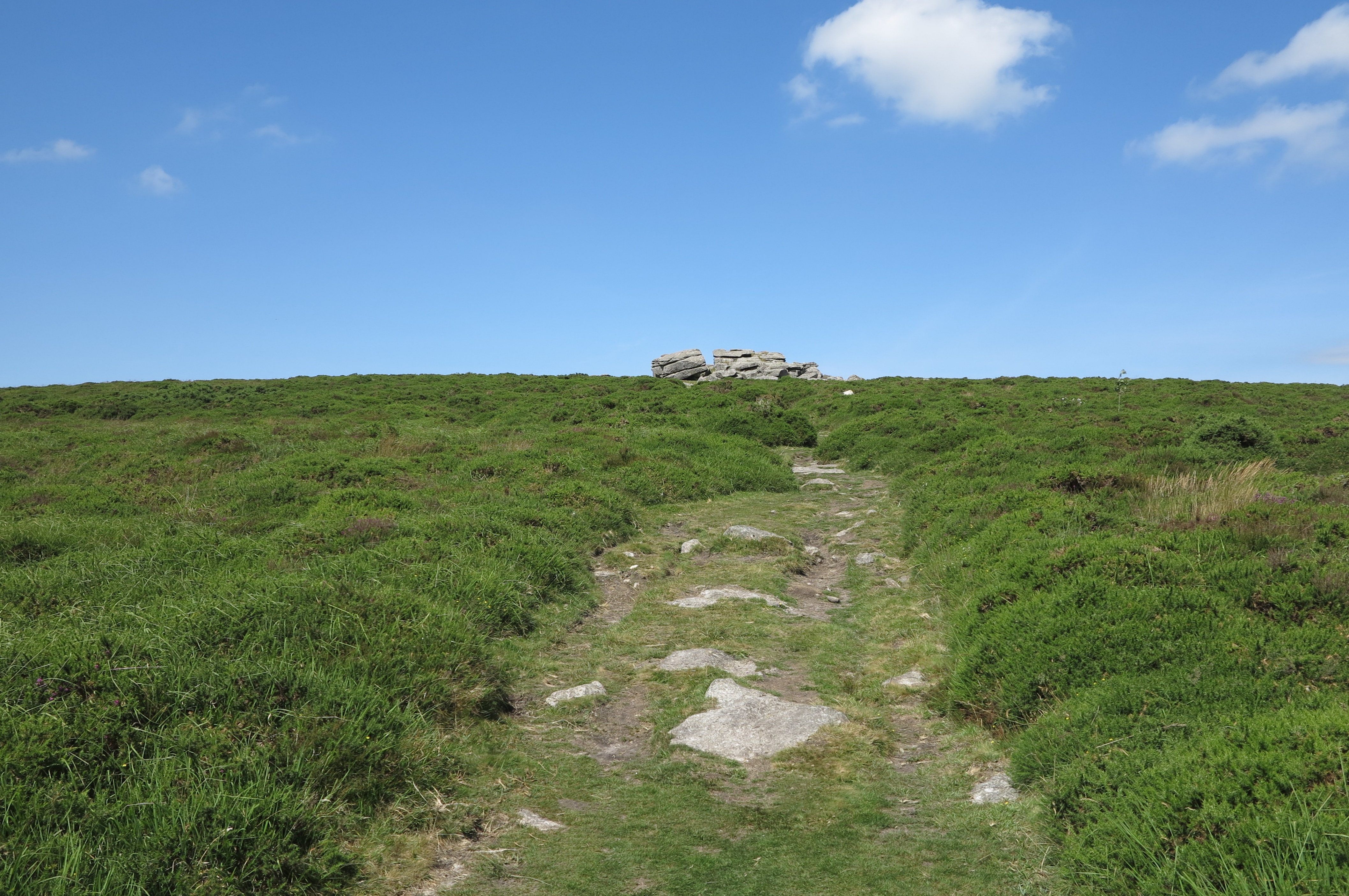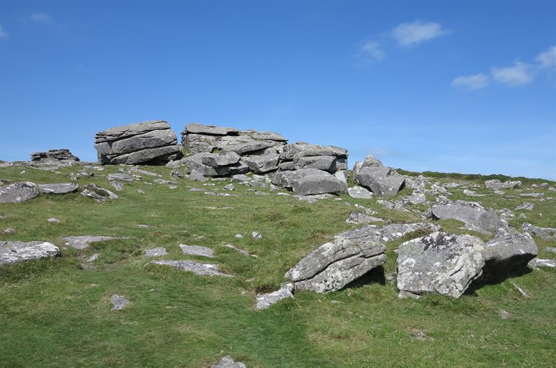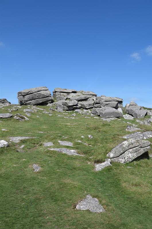 Top Tor is a small tor at the top of the hill above Widecombe In The Moor on the east of Dartmoor. On the road up from Widecombe, the B3387, there is a small parking area at the Hemsworthy Gate junction and from here a short walk up to Top Tor. From Top Tor there is access to a nice area of open moorland which includes Pil Tor and Tunhill Rocks. There are a number of routes to Widecombe. From the Plymouth direction take the A38 east and at the Goodstone junction turn off where signposted to Newton Abbott (A383). On the slip road, turn left where signposted to Widecombe and Sigford. Continue on this road for several miles up onto Dartmoor, then turn right at the Cold East crossroads and continue on this road to the Hemsworthy Gate junction.