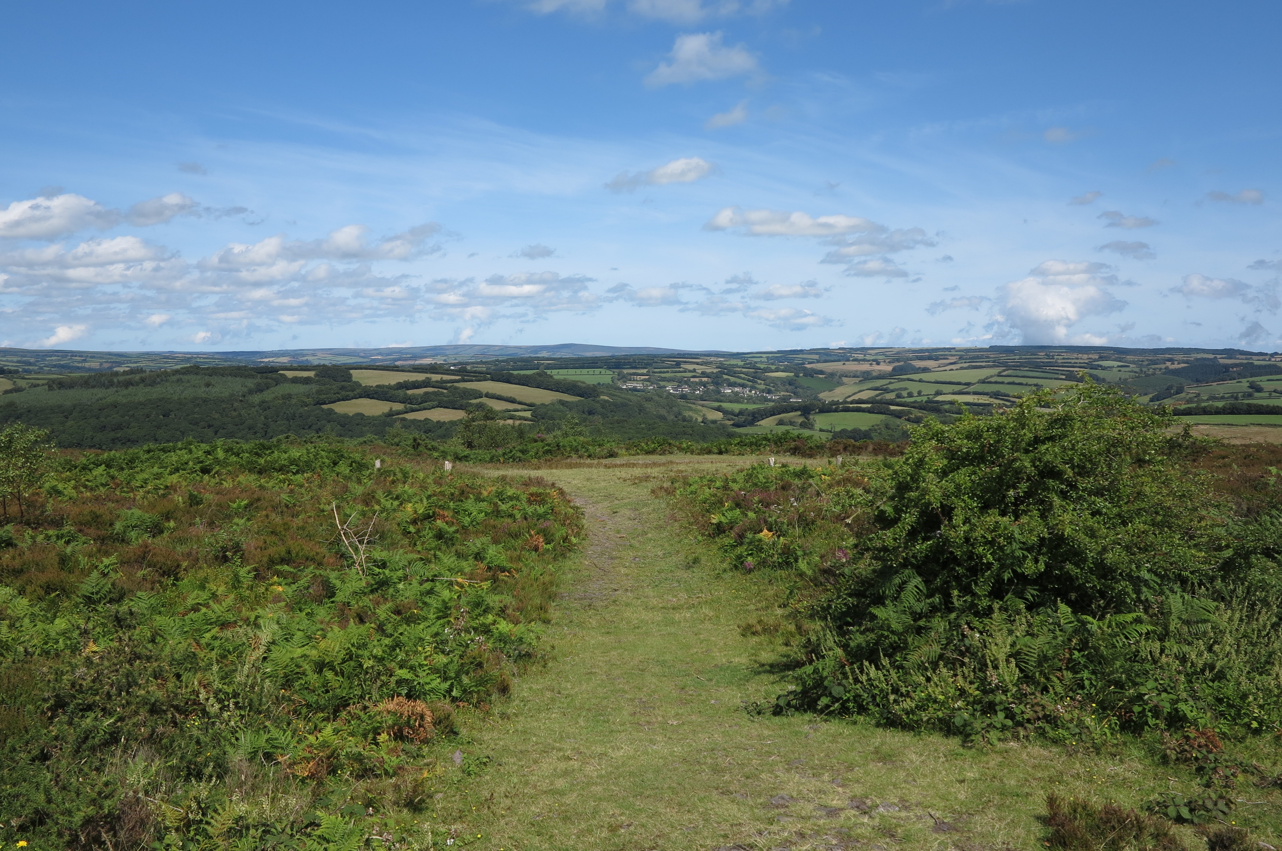 Haddon Hill is a large hill on Exmoor in Somerset. Most of the hill is open access and from the car park there is a path up to the summit of the hill for fine views over countryside and looking down over Wimbleball Lake. Haddon Hill is about 17 miles from Tiverton on the A396 road. On the A396 turn right where signposted to Bury. Drive through Bury and then turn left onto the B3190. Follow this road until a signposted turning to the Haddon Hill car park.