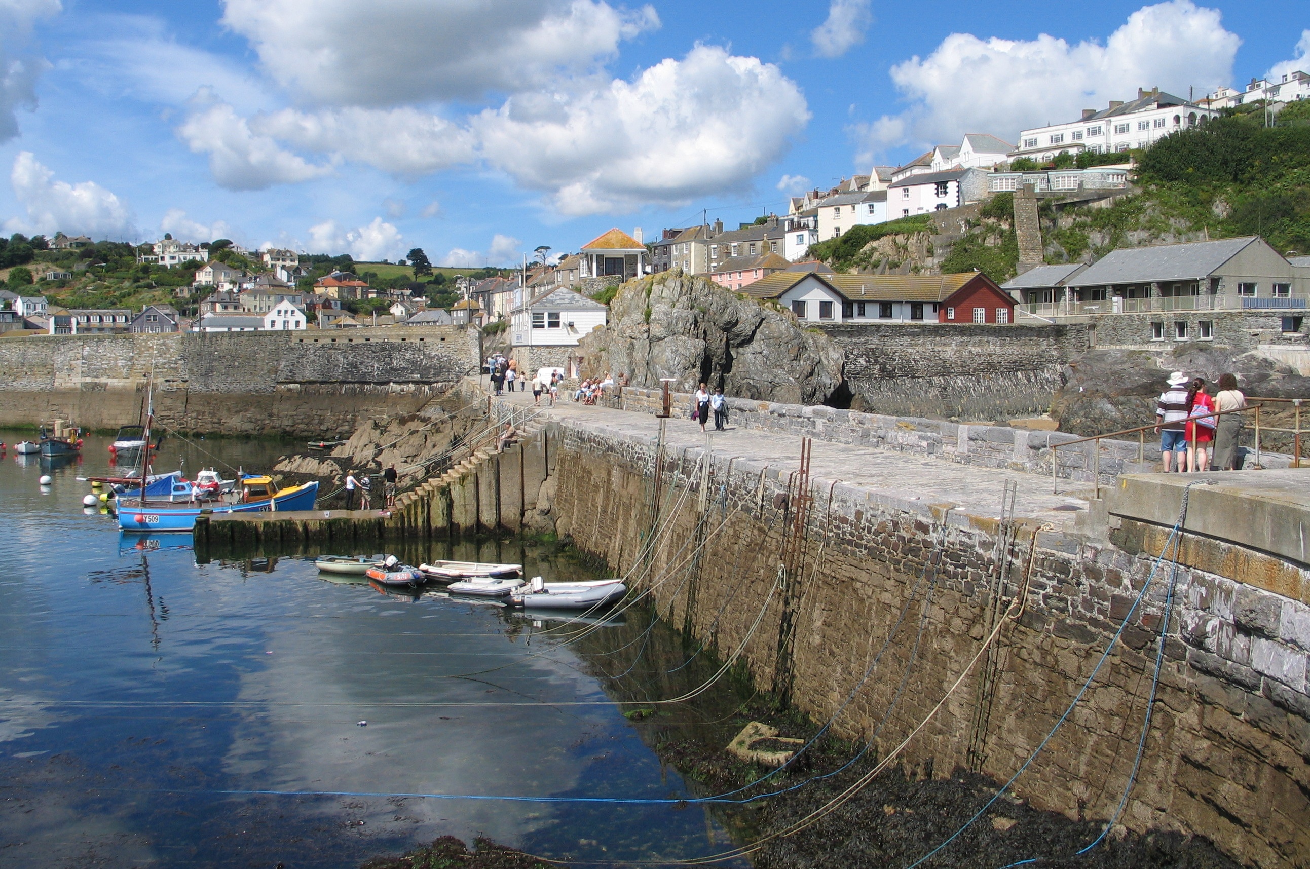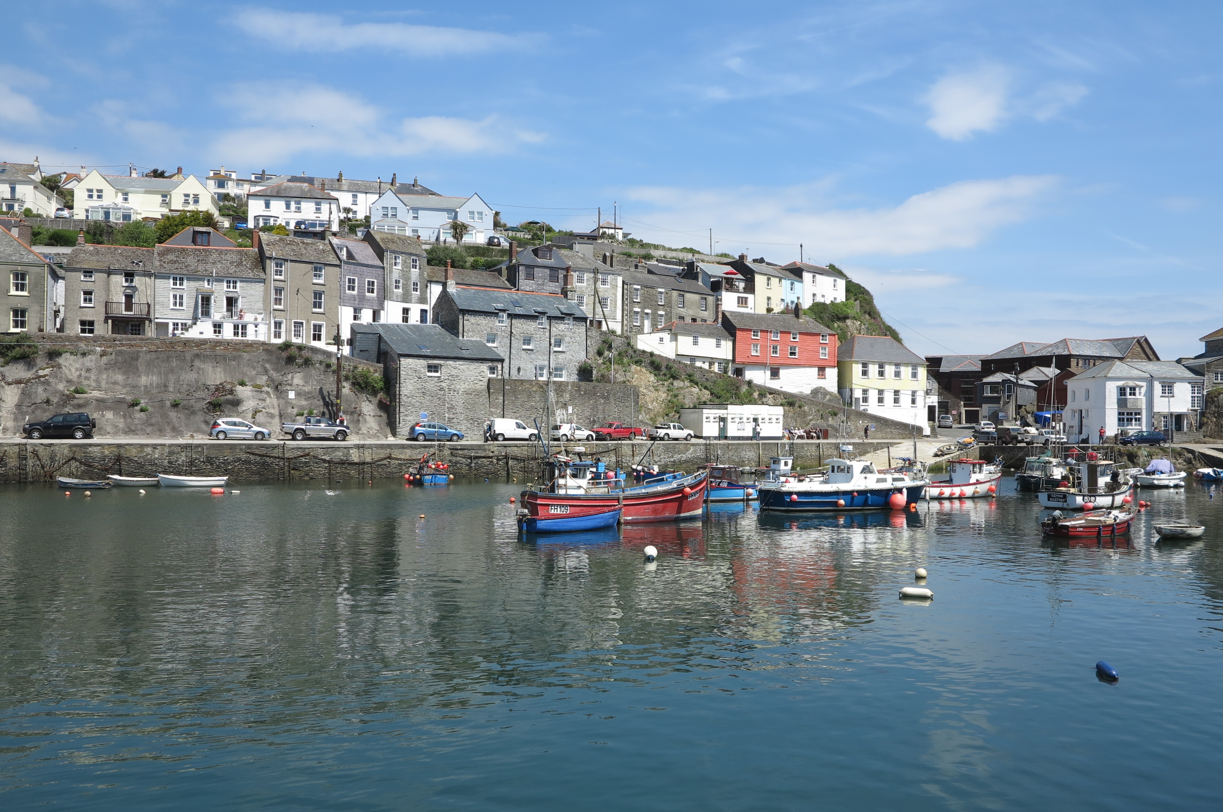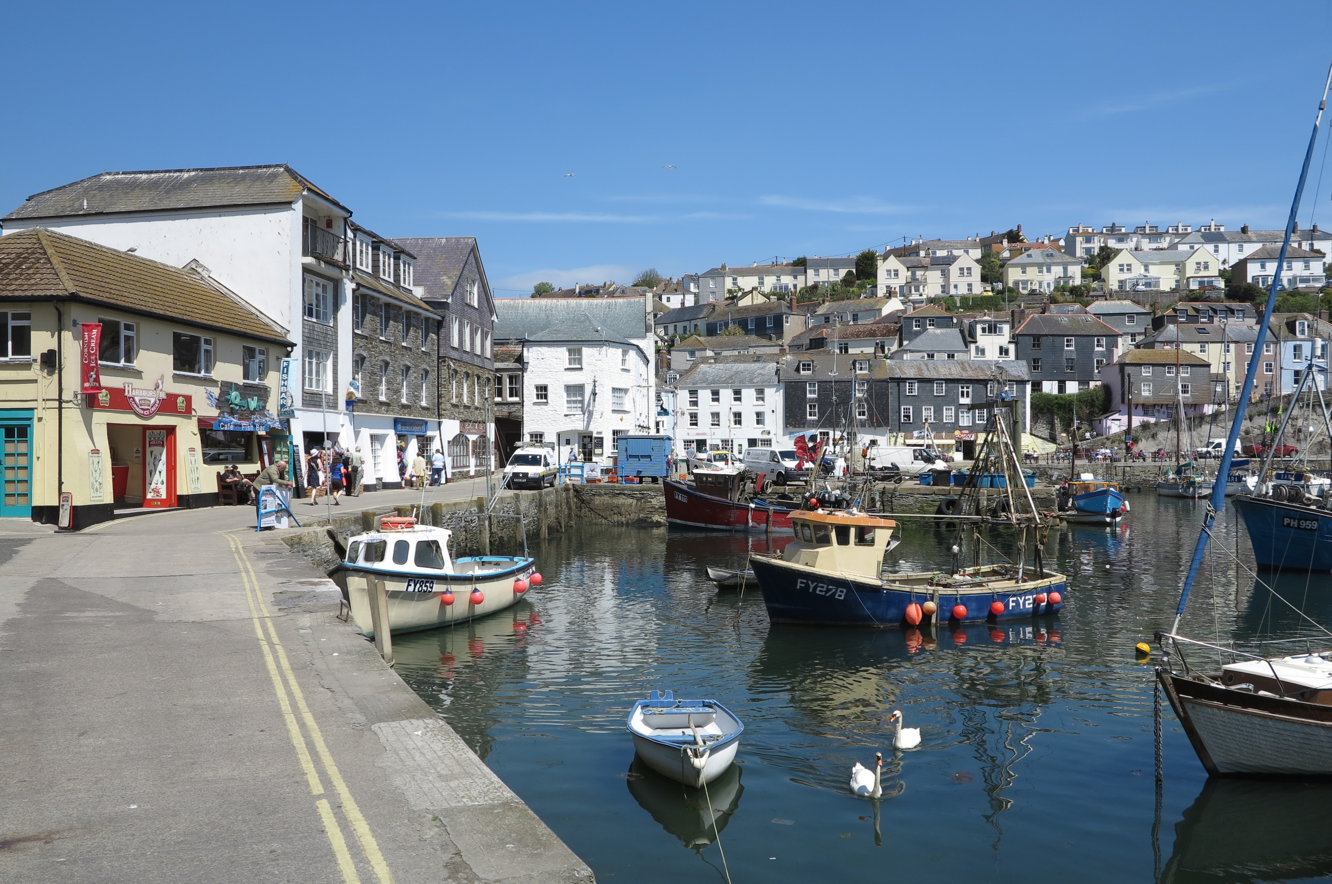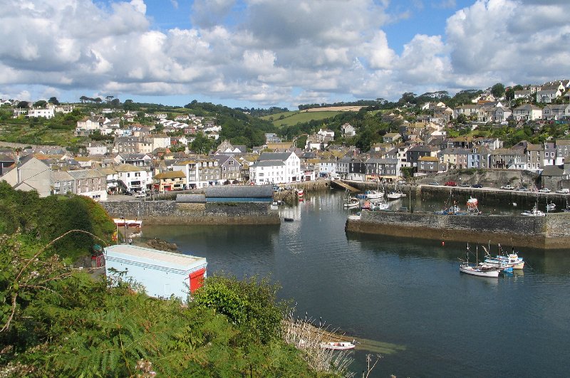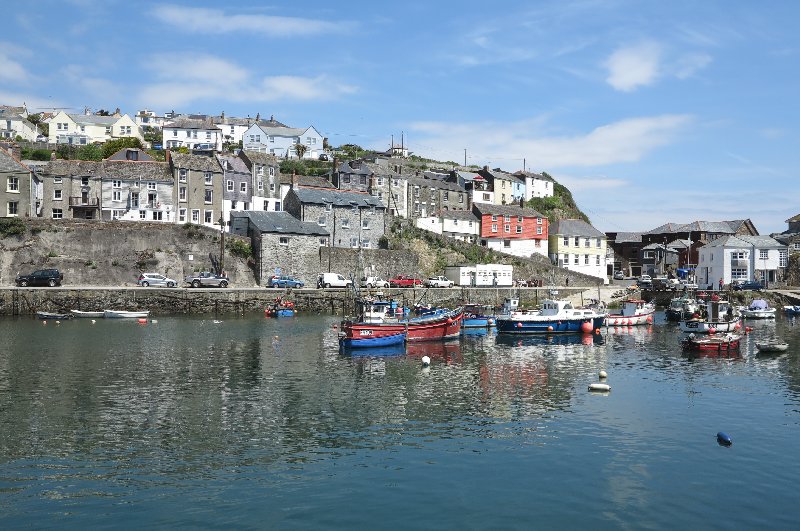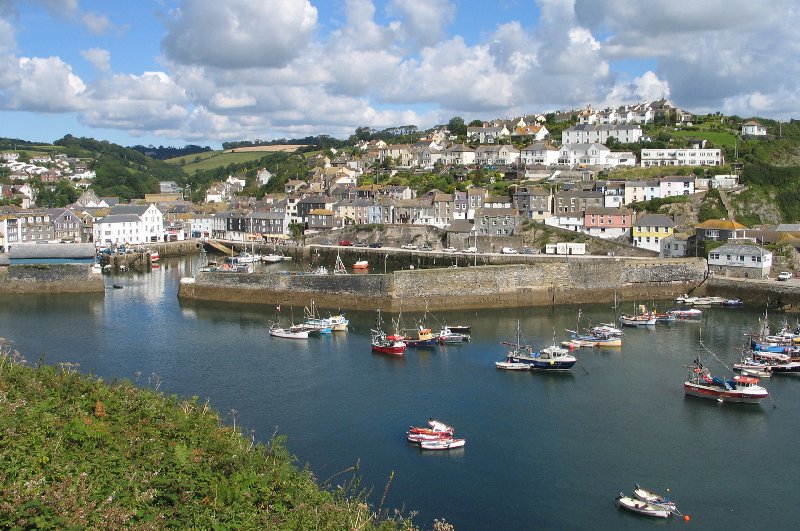 Mevagissey is a picturesque harbour town facing east into St Austell Bay on the South Cornwall coast. Mevagissey is well worth a visit. There are plenty of shops and cafés and you can walk along the inner and outer harbours. Mevagissey is 6 miles from St Austell. Approach St Austell on the A390 and at St Austell turn onto the Mevagissey road the B3273. There are several car parks. Photos include photos of Mevagissey from the cliffs and photos of Mevagissey harbour.