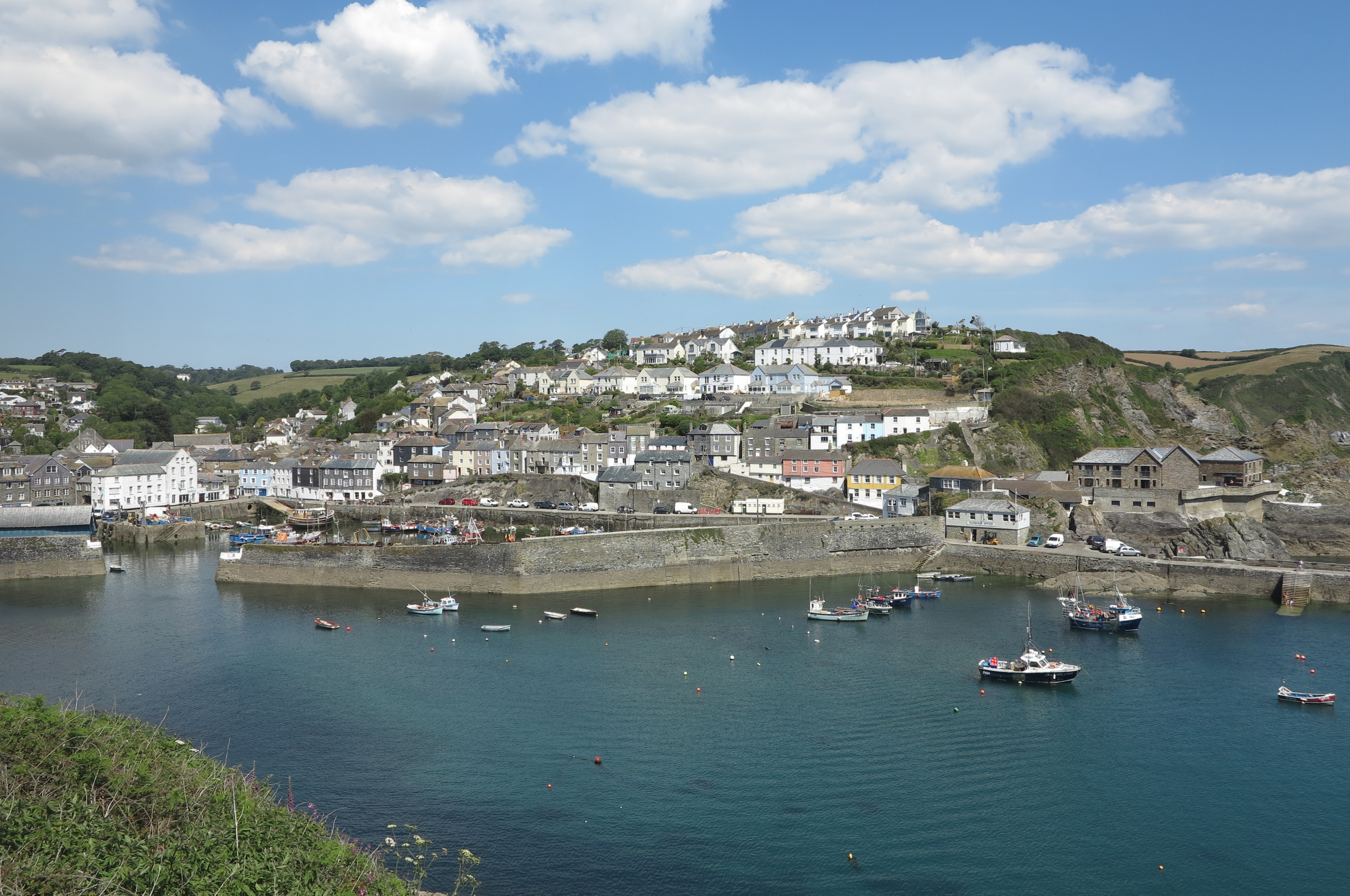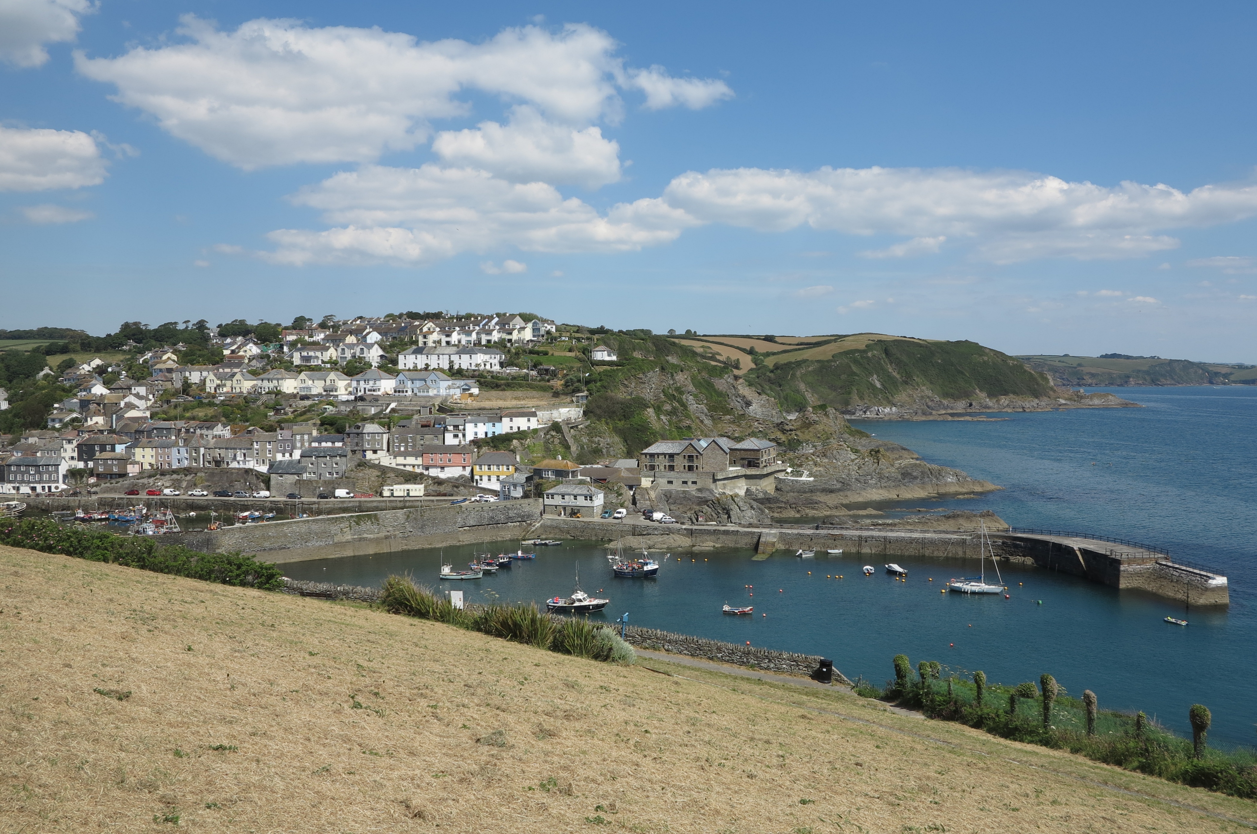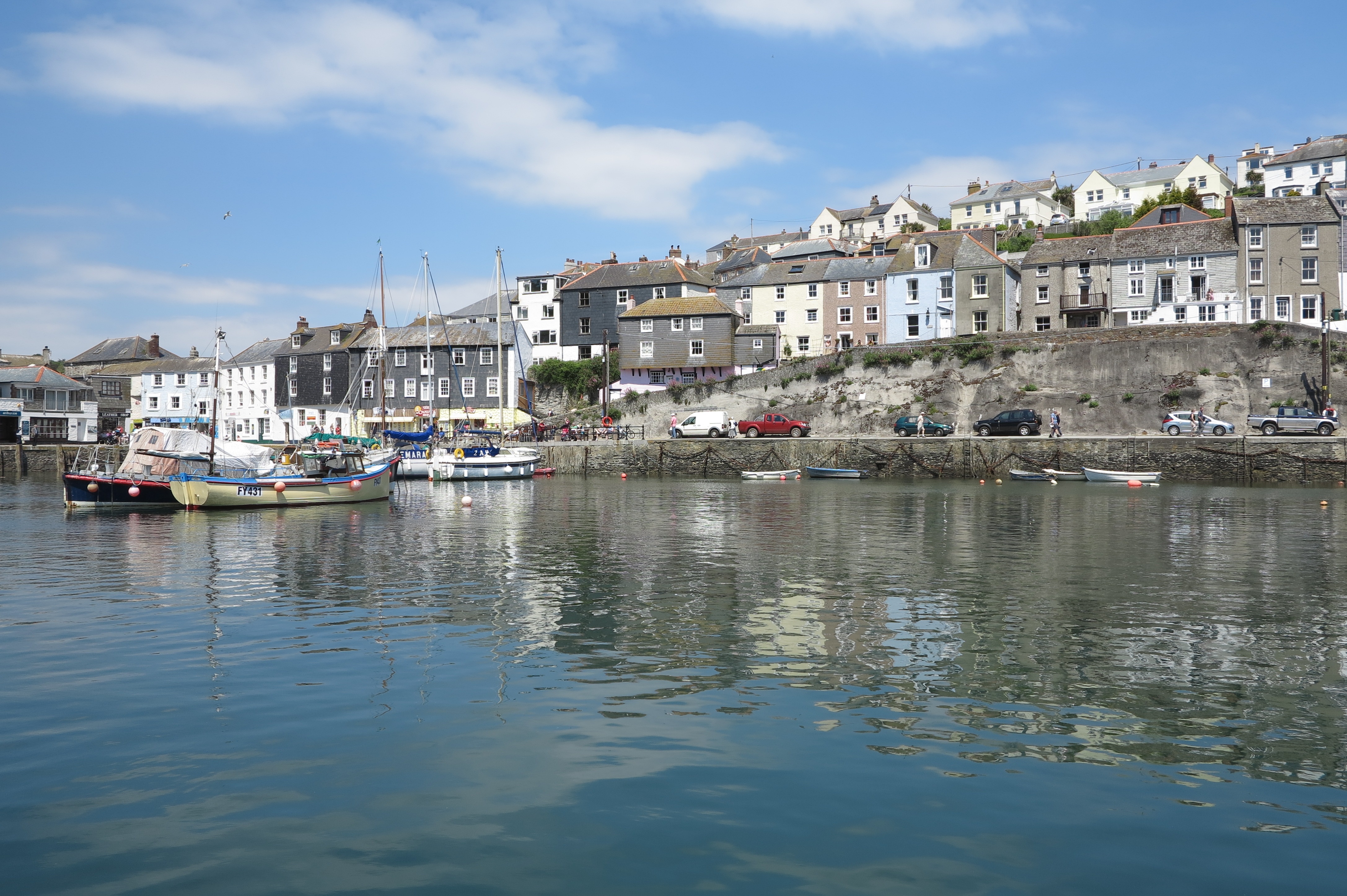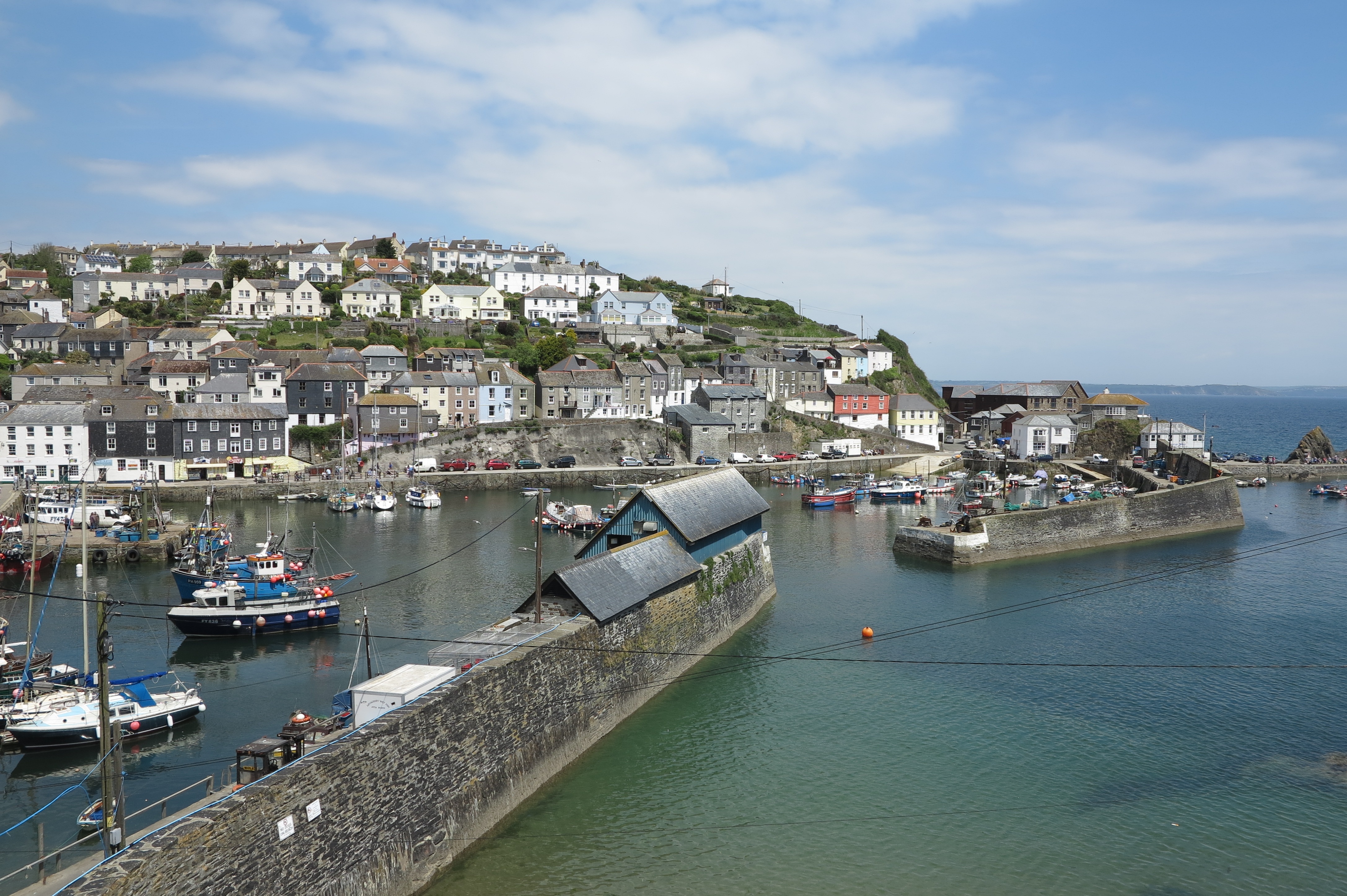 Mevagissey is a picturesque harbour town facing east into St Austell Bay on the South Cornwall coast. Mevagissey is well worth a visit. There are plenty of shops and cafés and you can walk along the inner and outer harbours. Mevagissey is 6 miles from St Austell. Approach St Austell on the A390 and at St Austell turn onto the Mevagissey road the B3273. There are several car parks. Photos include photos of Mevagissey from the cliffs and photos of Mevagissey harbour.