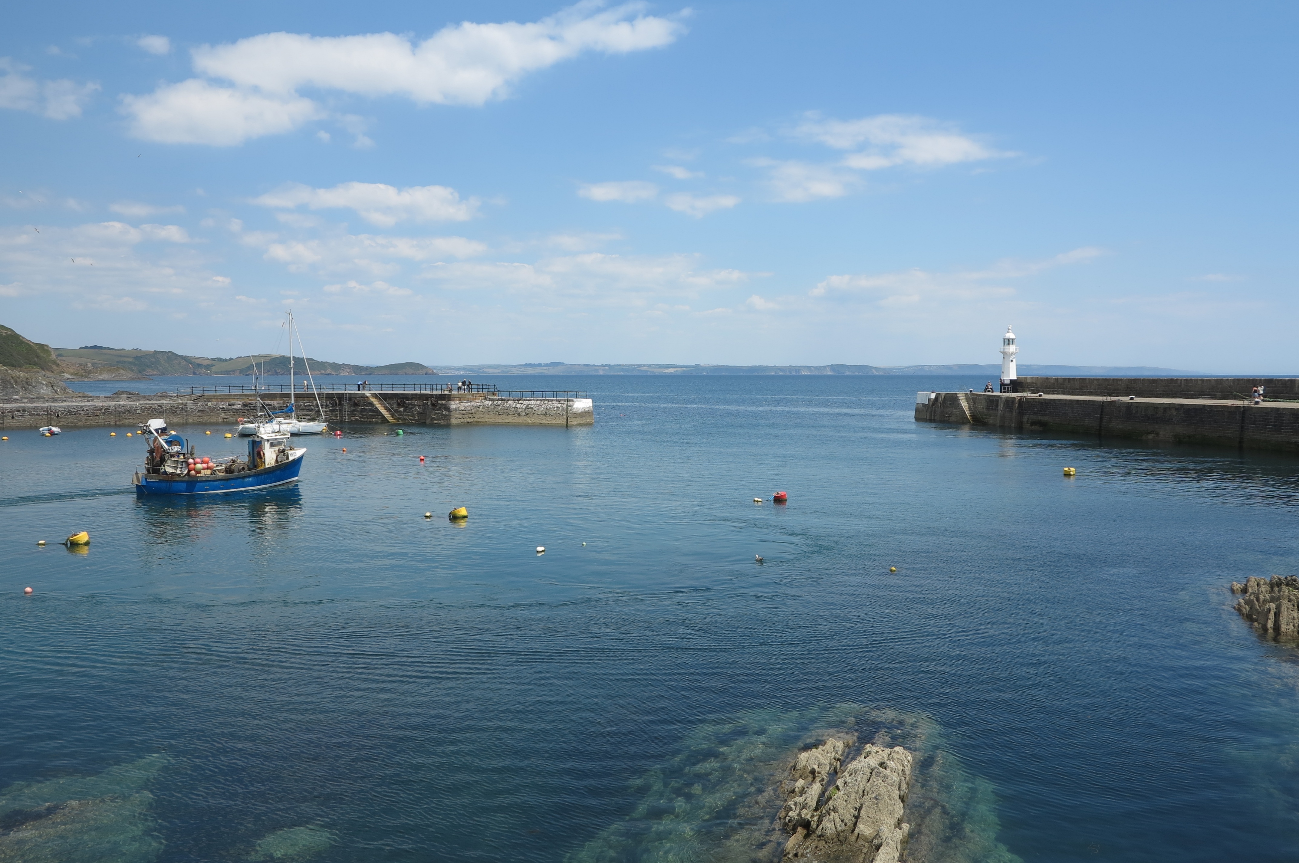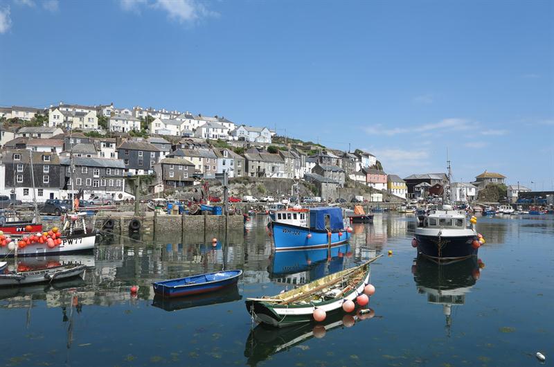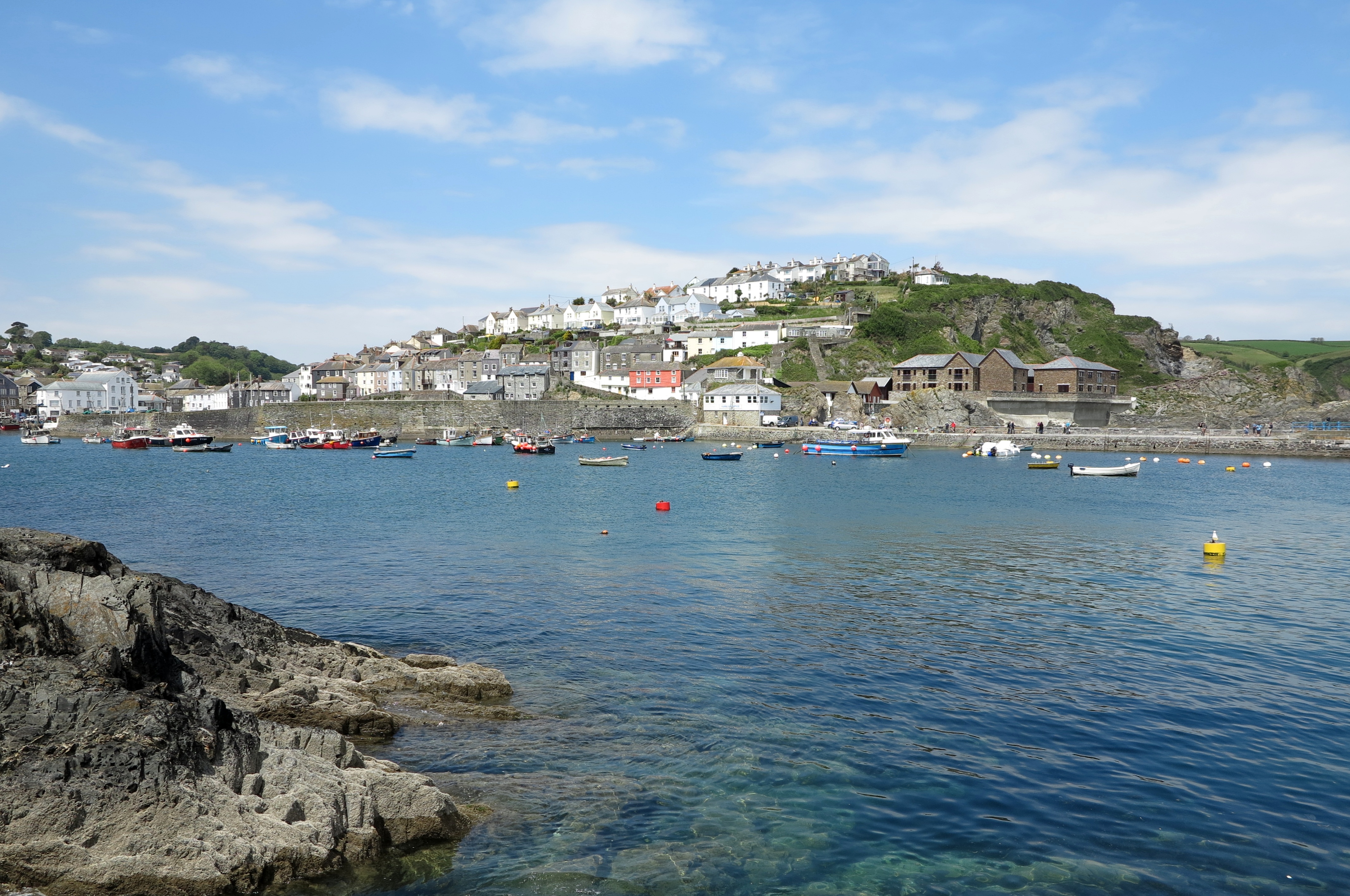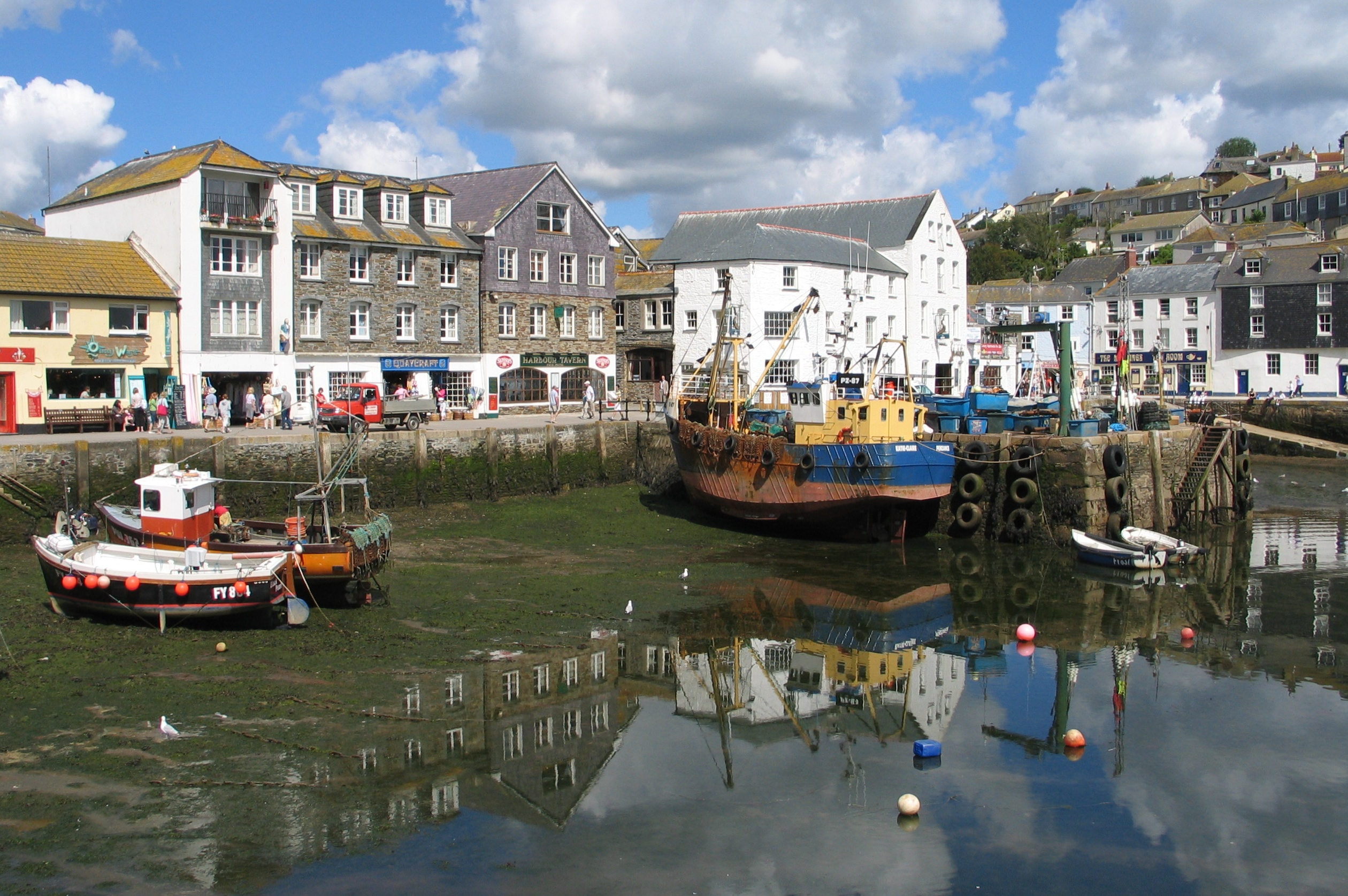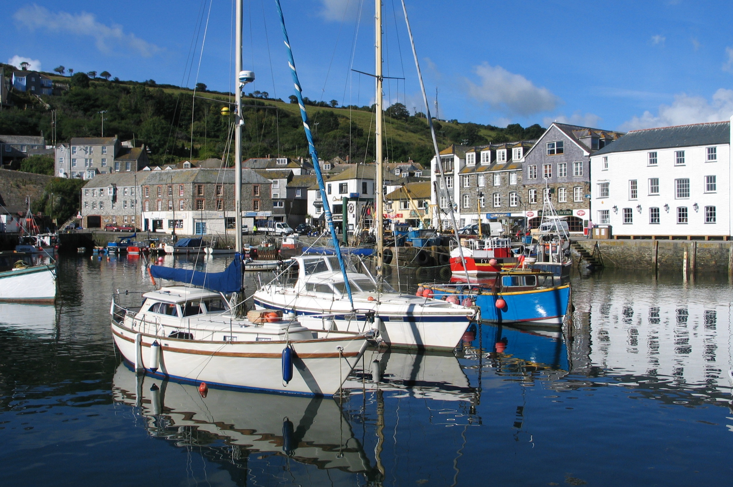 Mevagissey is a picturesque harbour town facing east into St Austell Bay on the South Cornwall coast. Mevagissey is well worth a visit. There are plenty of shops and cafés and you can walk along the inner and outer harbours. Mevagissey is 6 miles from St Austell. Approach St Austell on the A390 and at St Austell turn onto the Mevagissey road the B3273. There are several car parks. Photos include photos of Mevagissey from the cliffs and photos of Mevagissey harbour.