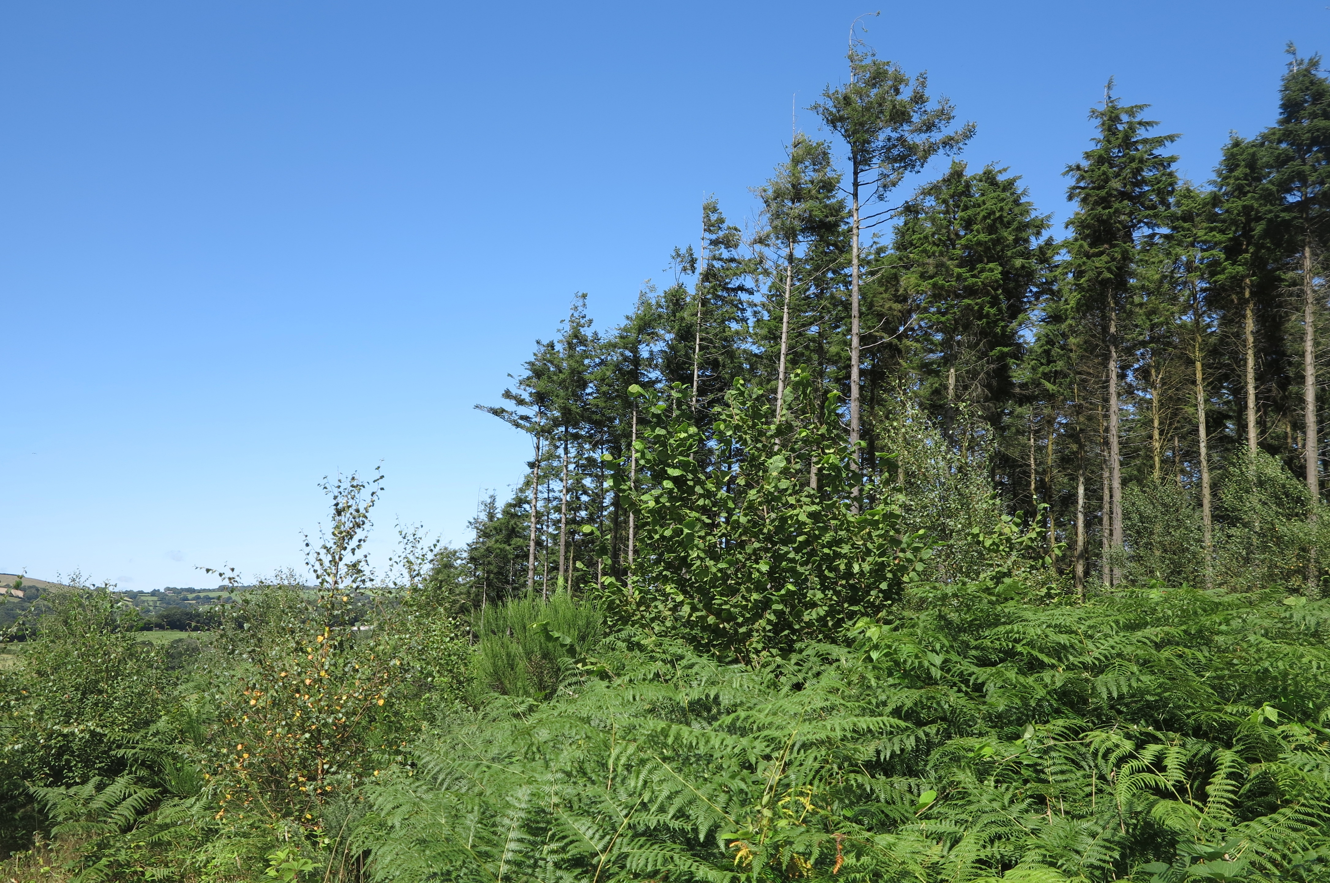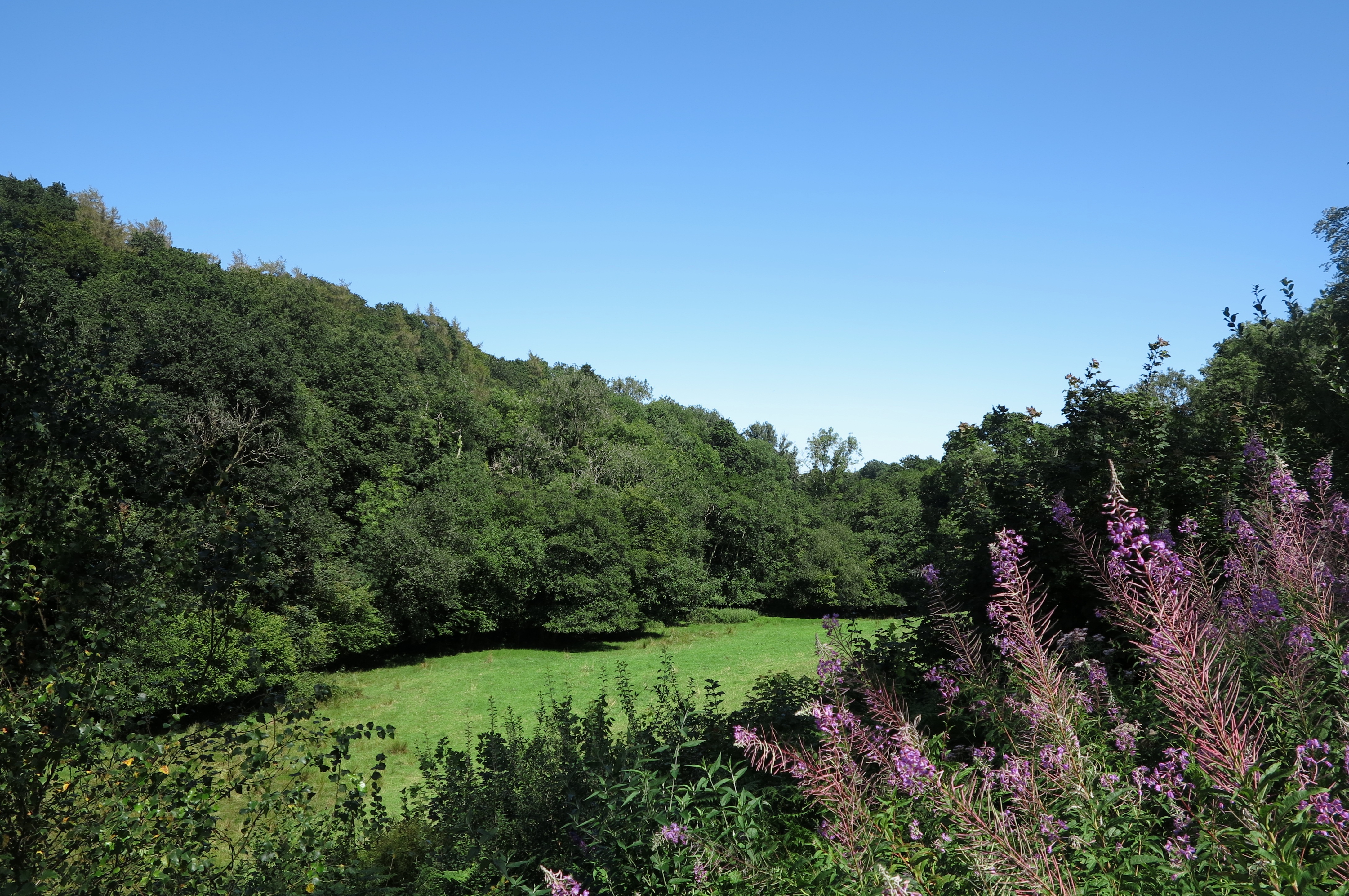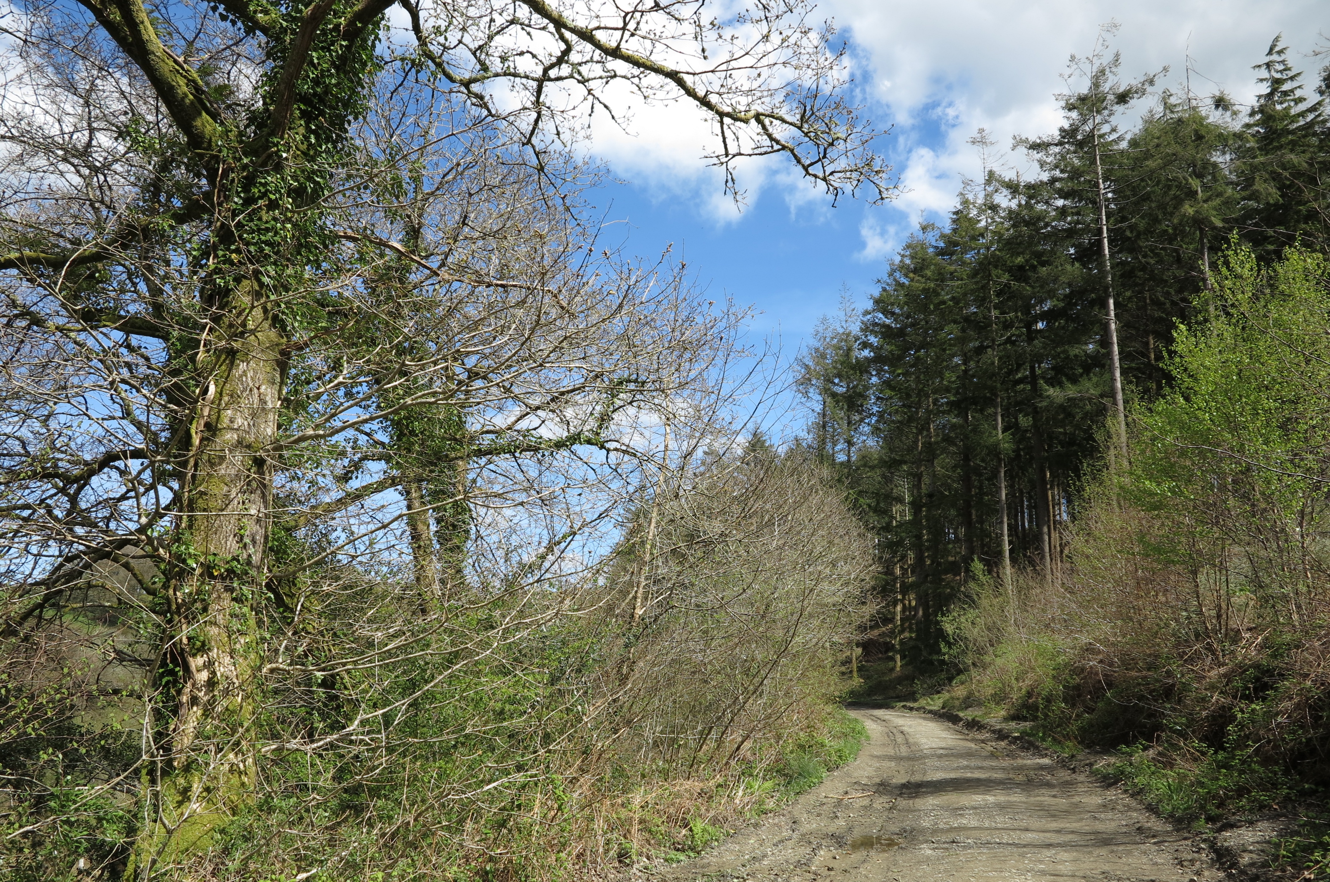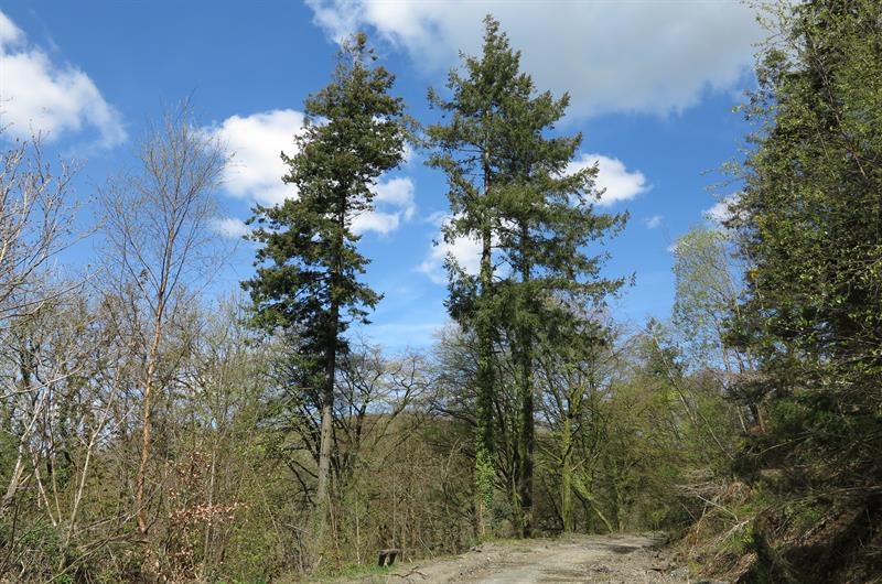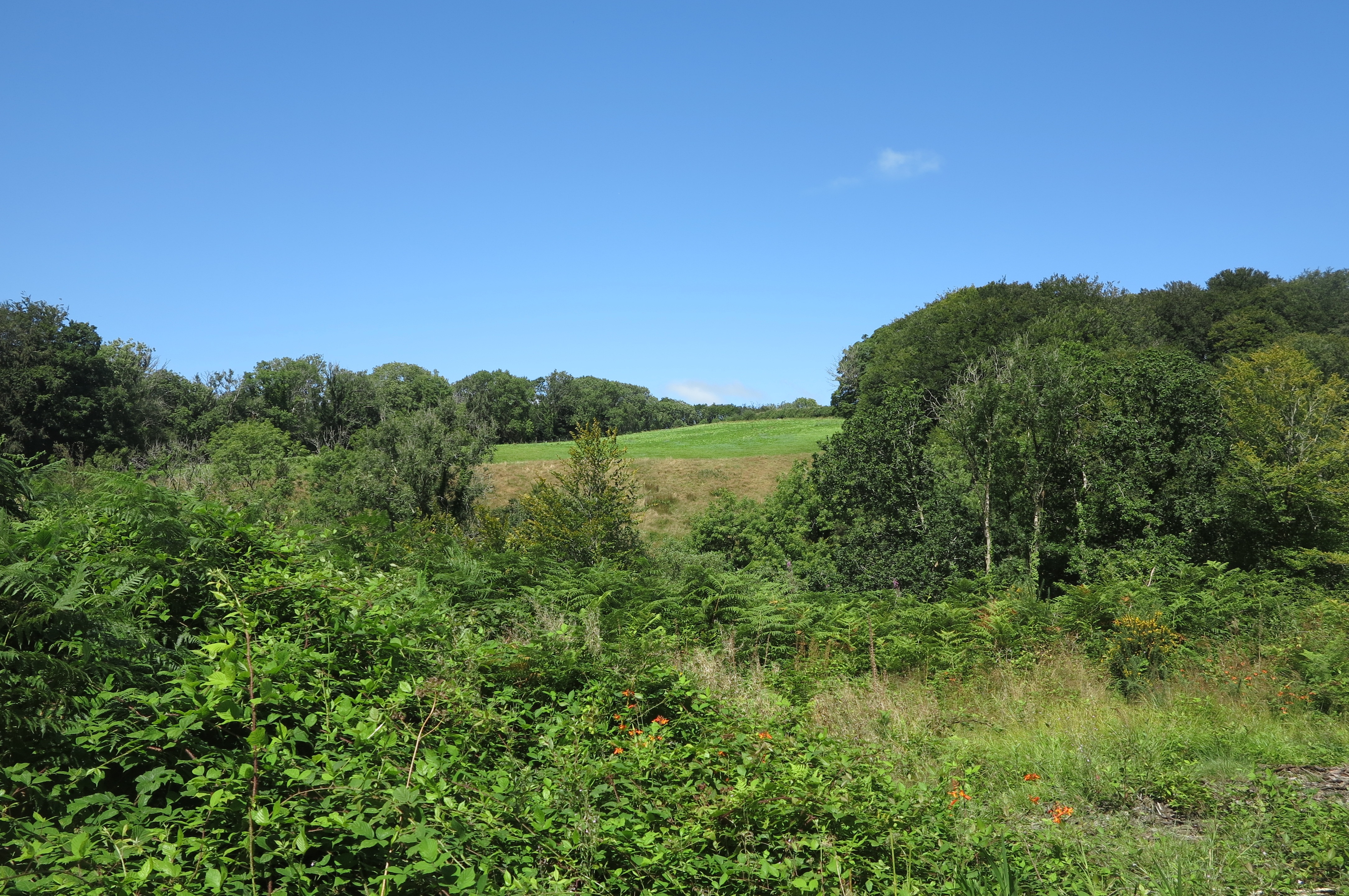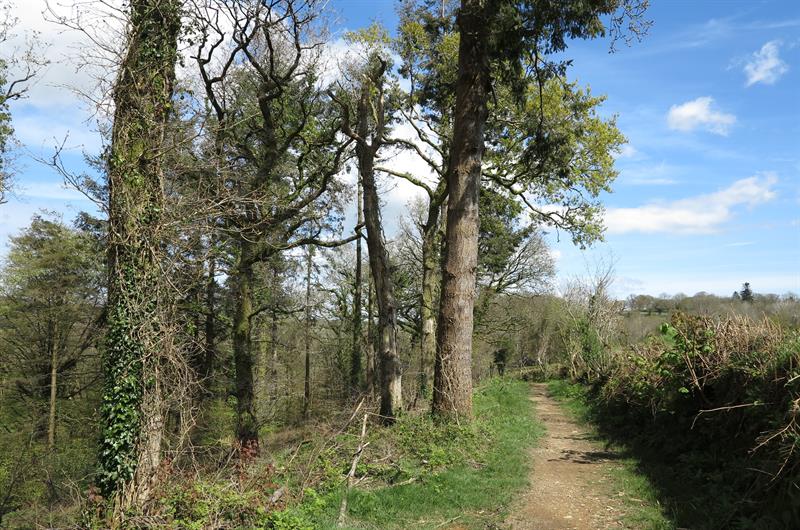 High Wood is a small woodland on the side of a valley looking down on the East Looe River near Liskeard. The woodland is owned by the charity "Protect Earth" who aim to restore ancient woodland throughout the UK. High Wood is open to the public and there are a number of trails through the woods. There are several entrances into High Wood, including a southern entrance by the A38 road. On the A38 travelling west from Liskeard turn off where signposted to Moorswater Industrial Estate. After exiting the A38 turn left again signposted to Moorswater, then take the next left to cross the bridge over the A38. Immediately after the bridge turn left and take the next right onto a lane and then follow a lane to some cottages where there is a track into High Wood. There are a few spaces for parking in the lane. This lane can also be reached on foot from New Road in Liskeard.
