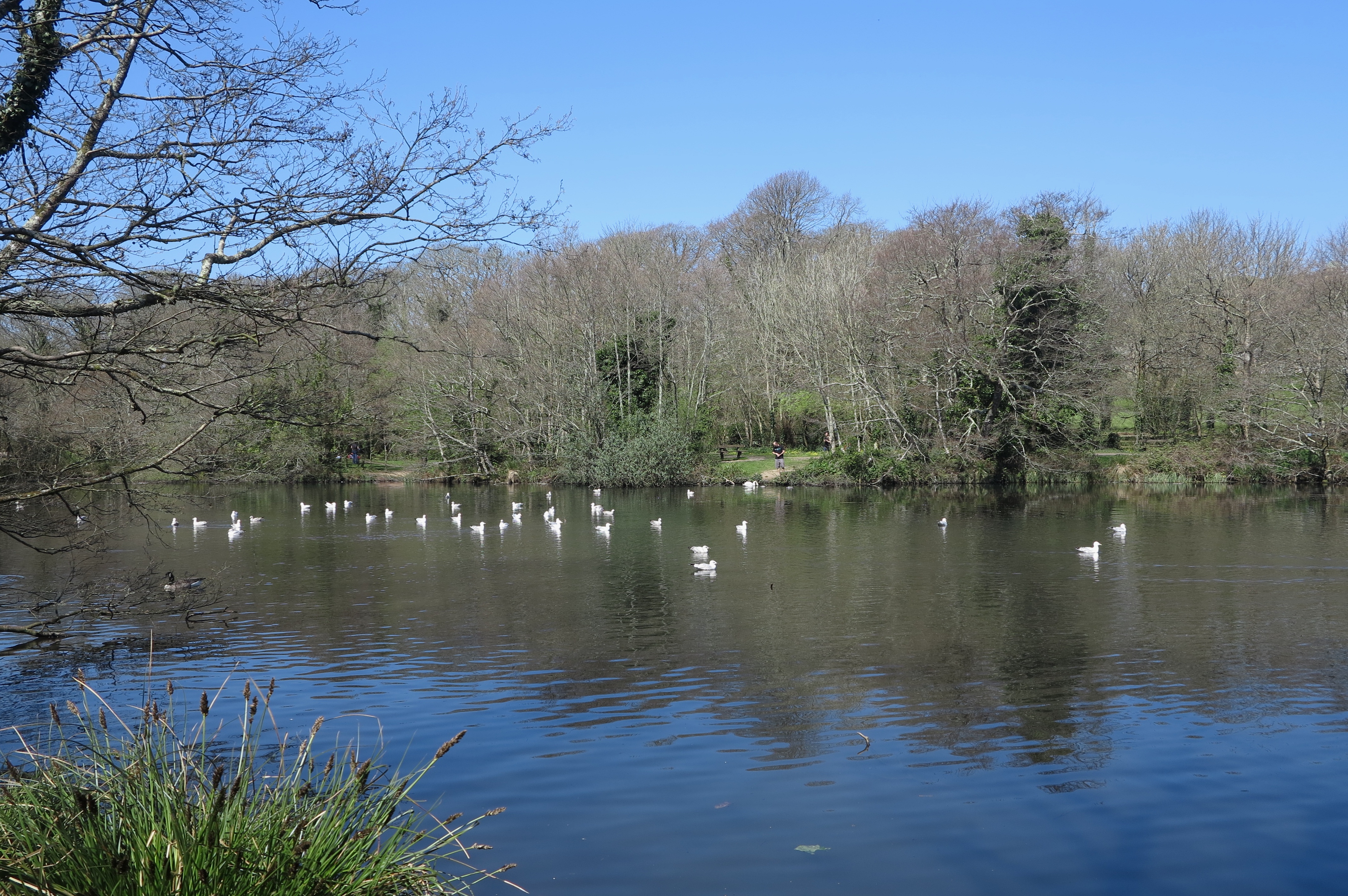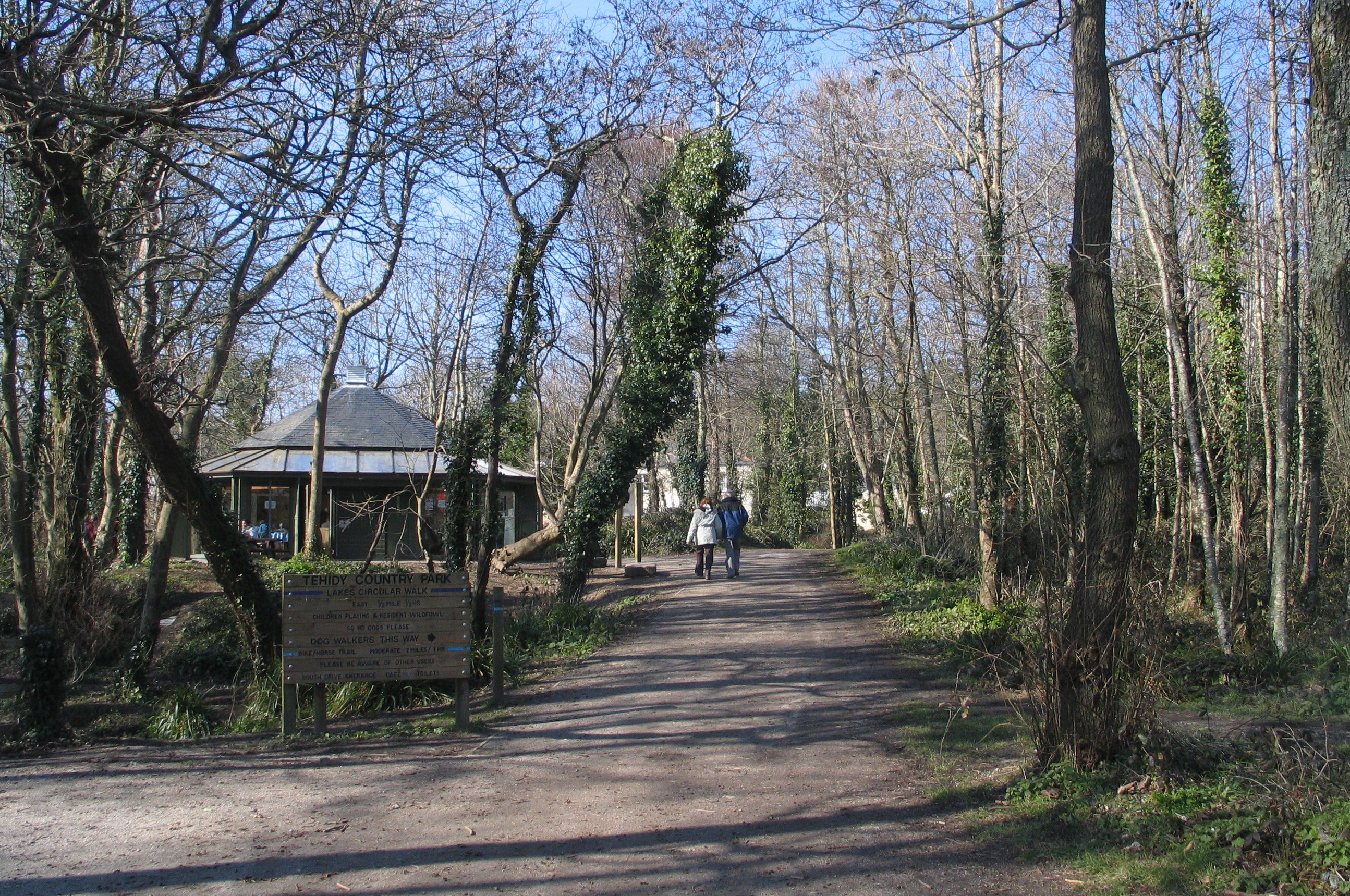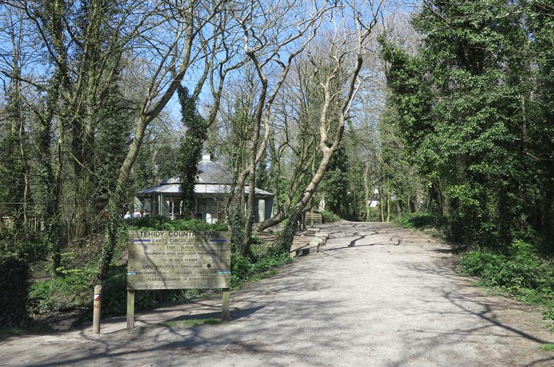 Tehidy Country Park is a large woodland area, north of Camborne in West Cornwall. There are many woodland trails and a visitor centre. There is a small car park by the visitor centre which can be full on sunny days. Tehidy Country Park is just north of the A30. On the A30, turn off where signposted to Camborne and then turn right for Portreath to go under the A30. Then turn left where signposted to Tehidy. Turn left at two roundabouts and follow the signs to Tehidy Country Park. Photos include photos of Tehidy Country Park, woodland trails and lakes.