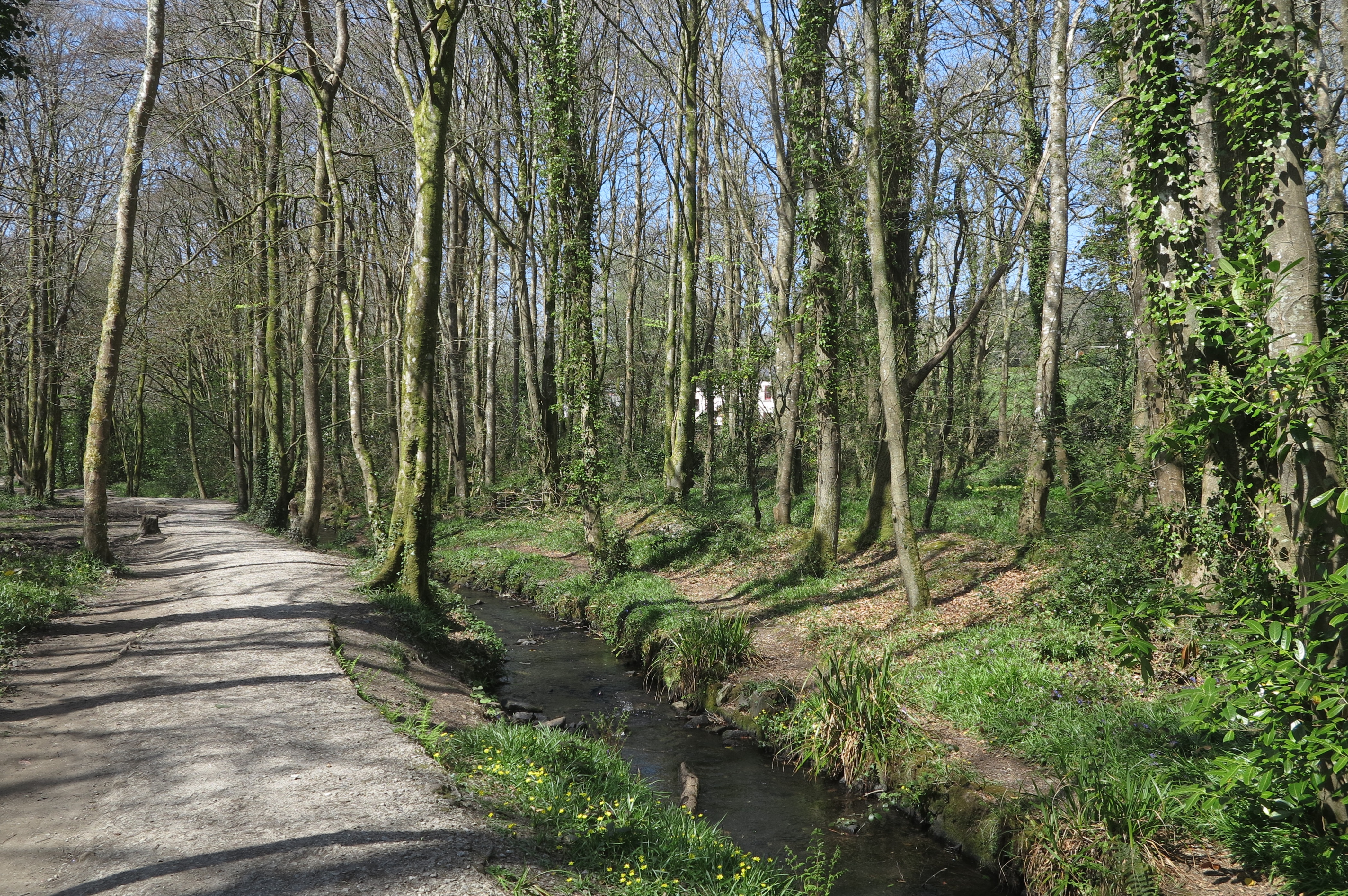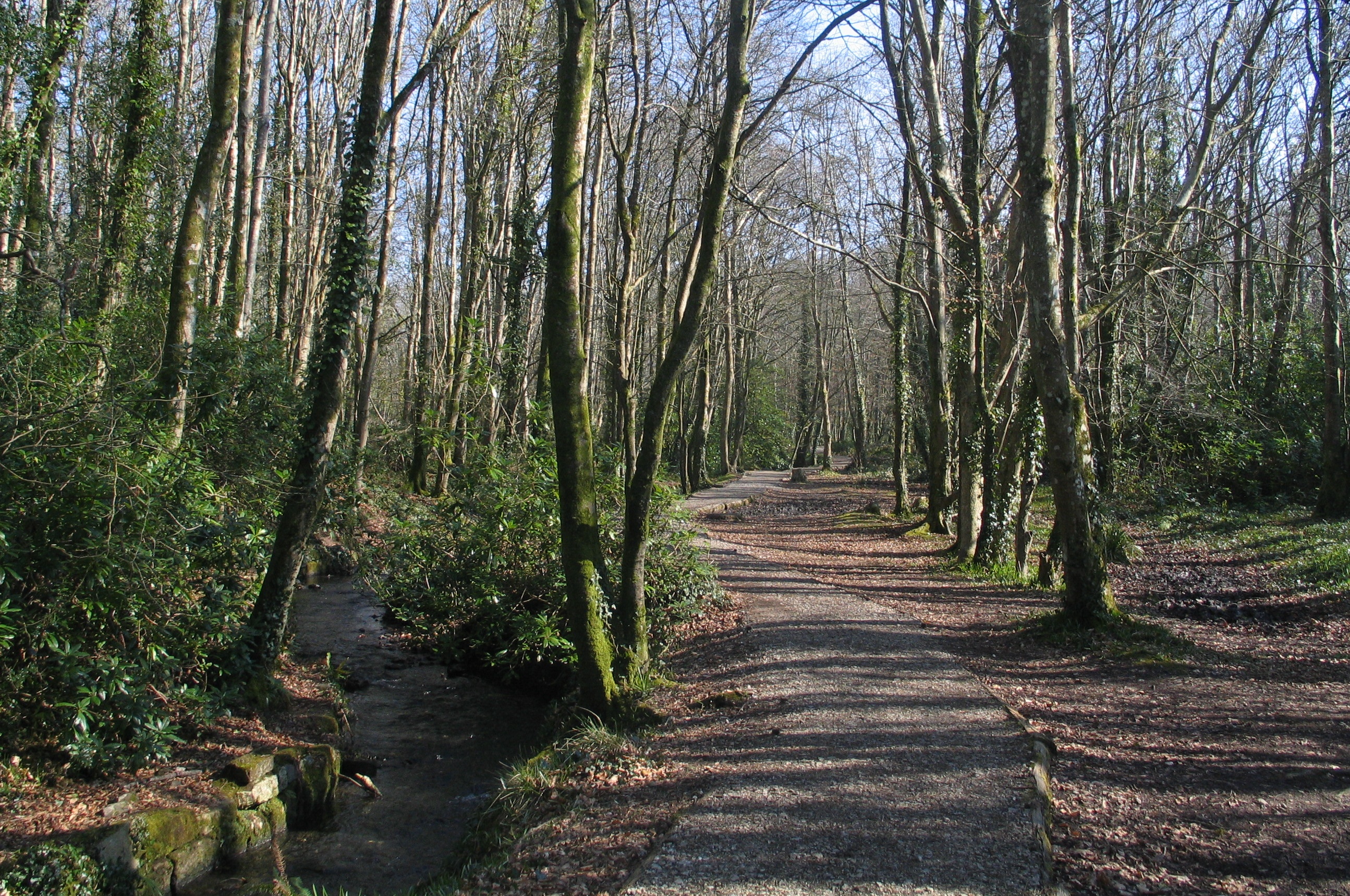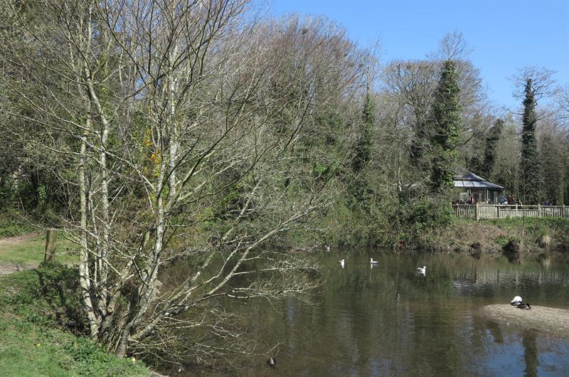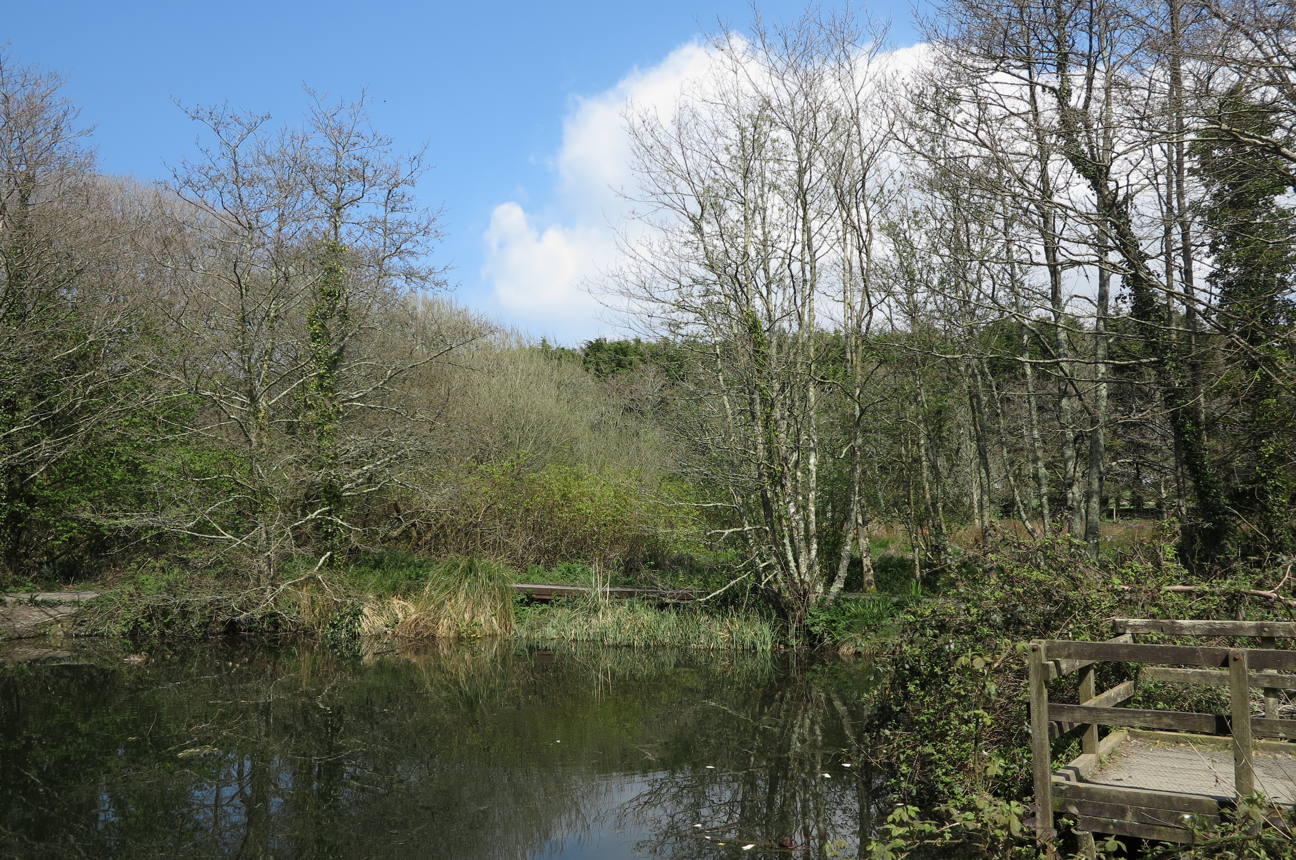 Tehidy Country Park is a large woodland area, north of Camborne in West Cornwall. There are many woodland trails and a visitor centre. There is a small car park by the visitor centre which can be full on sunny days. Tehidy Country Park is just north of the A30. On the A30, turn off where signposted to Camborne and then turn right for Portreath to go under the A30. Then turn left where signposted to Tehidy. Turn left at two roundabouts and follow the signs to Tehidy Country Park. Photos include photos of Tehidy Country Park, woodland trails and lakes.